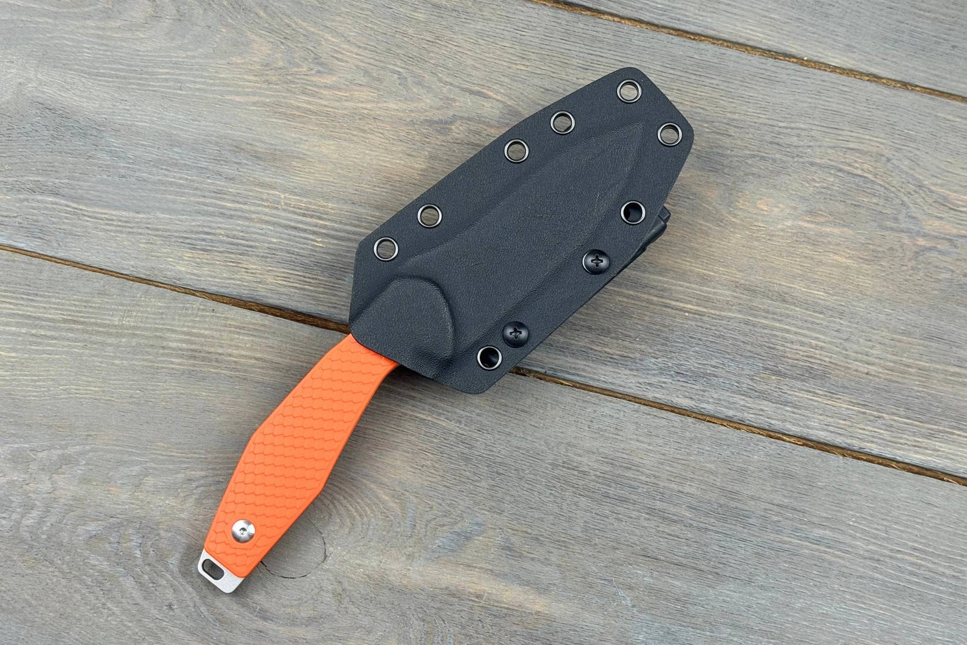 Руків’я виготовлене з термопластичної гуми (TPR) — матеріалу, що забезпечує комфорт і контроль незалежно від погодних умов. Версія у кольорі Orange особливо корисна для рибалок, туристів і рятувальників, адже виглядає контрастно та легко знаходиться навіть у низькій видимості.