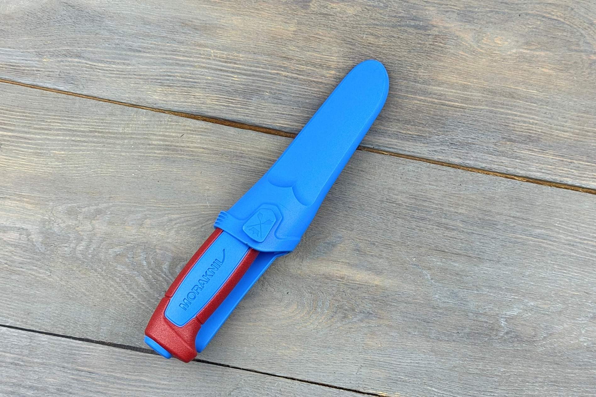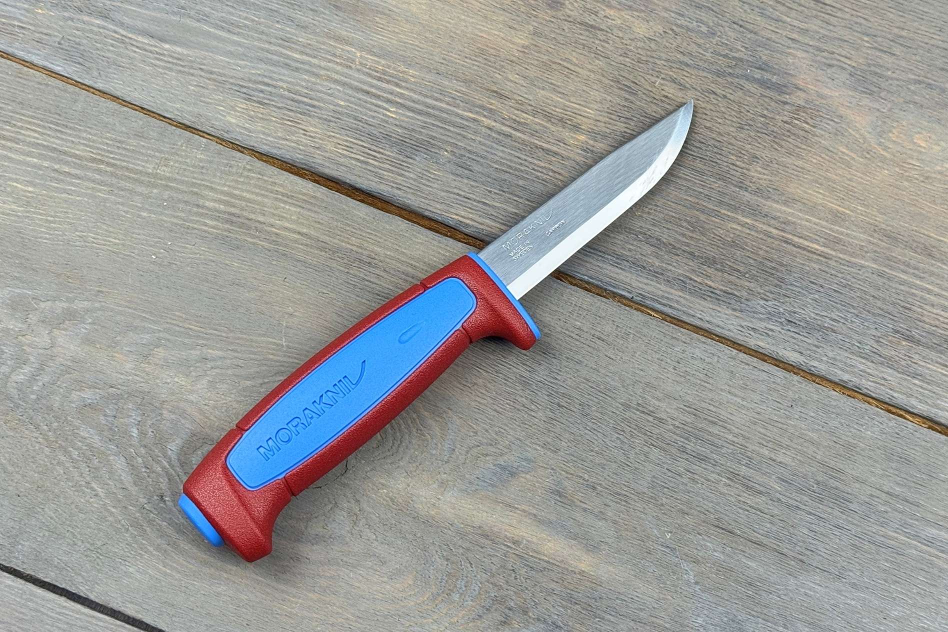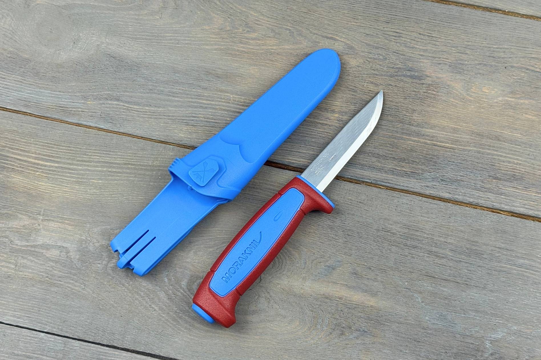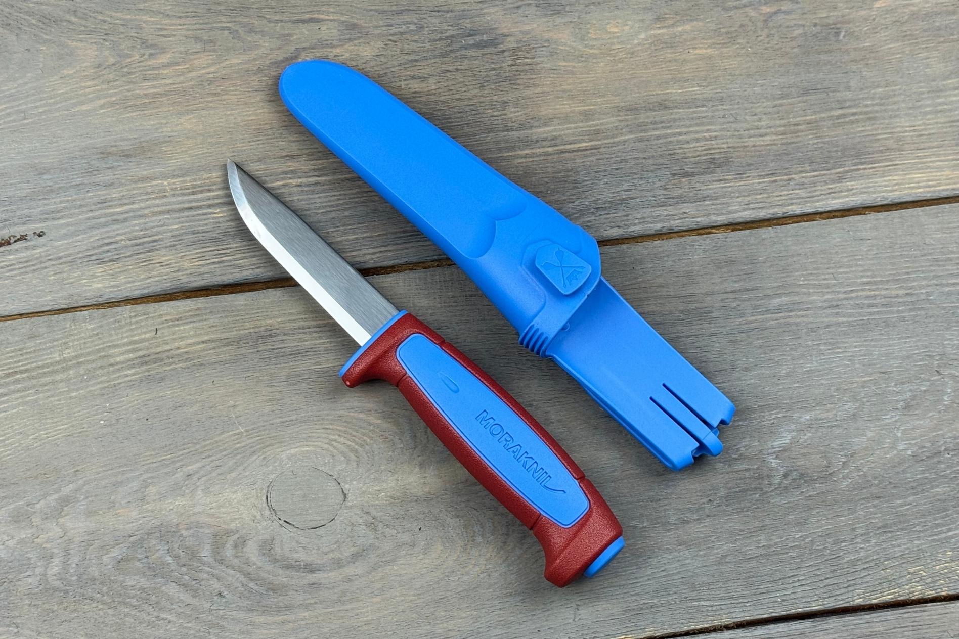 Руків’я з міцного поліпропілену має ергономічну форму, що забезпечує впевнений хват. Яскраві кольори Blue та Dala Red роблять ніж легко помітним у польових умовах. Вага моделі всього 110 г, що робить її практично невагомою при носінні.
