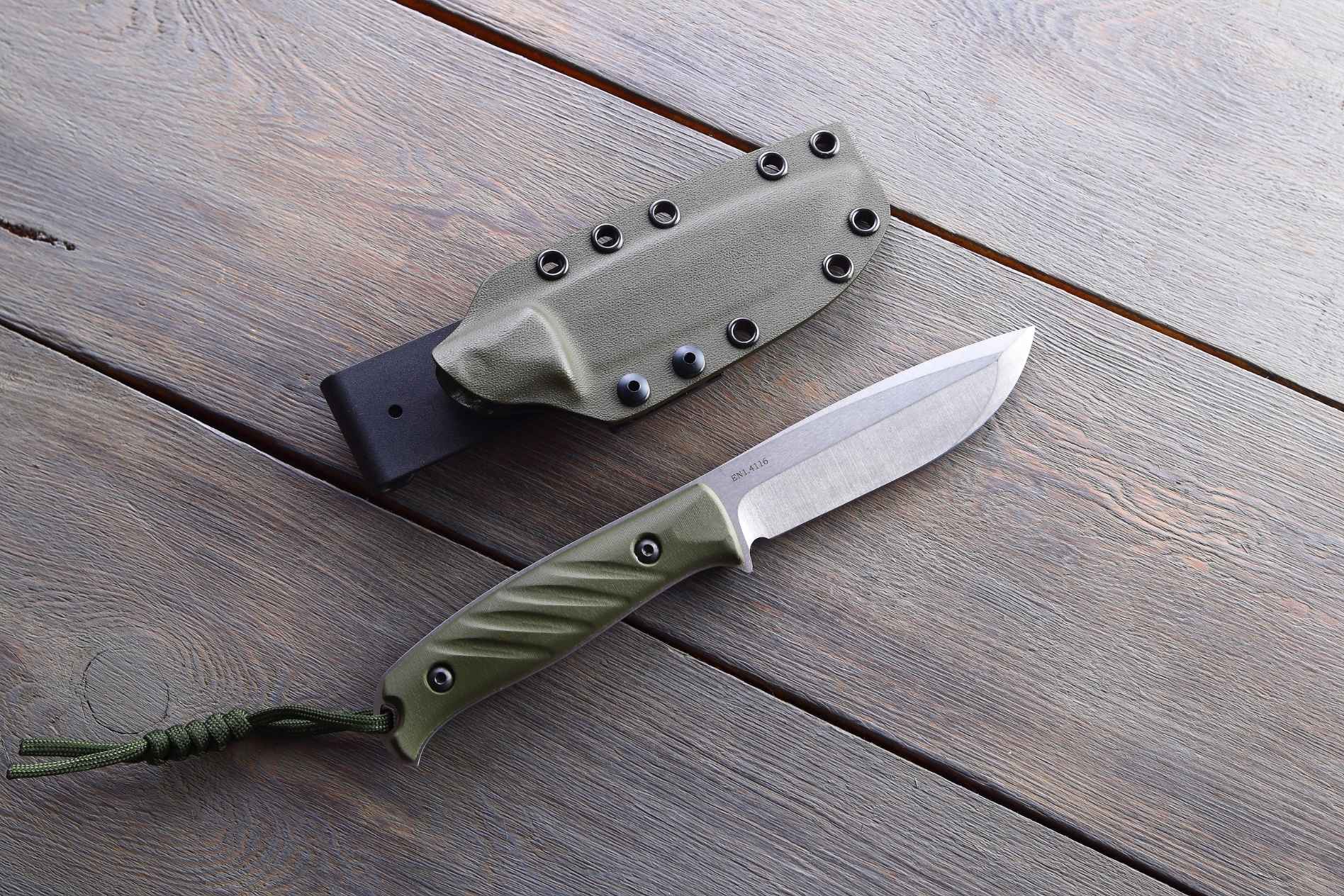 Лезо ножа виготовлене з високоякісної сталі Krupp 1.4116, що надає йому високу зносостійкість і відмінні ріжучі властивості. Твердість сталі 59-60 HRC дозволяє лезу утримувати заточку навіть після тривалого використання. Довжина леза 105 мм та товщина 3 мм роблять його ідеальним для точних різальних робіт, а також для більш важких завдань, таких як обробка деревини.
