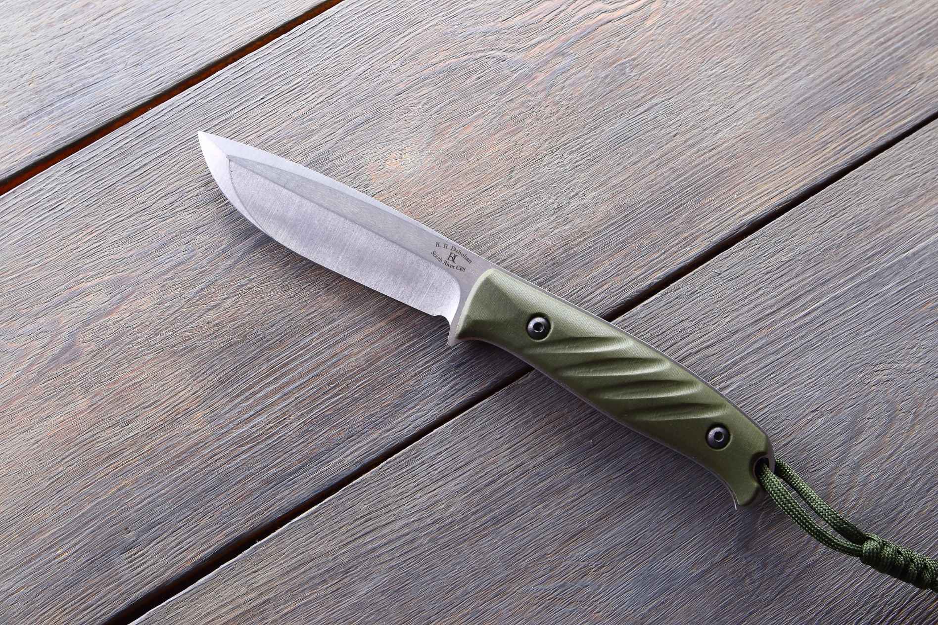 Руків’я ножа виготовлено з матеріалу G10, що забезпечує його високу міцність, легкість і стійкість до вологи, температурних коливань та механічних пошкоджень. Форма руків’я гарантує комфортне та надійне зчеплення навіть під час тривалого використання. Текстурована поверхня руків’я дозволяє надійно утримувати ніж, навіть коли рука мокра або волога, що підвищує безпеку при роботі з ним в екстремальних умовах.