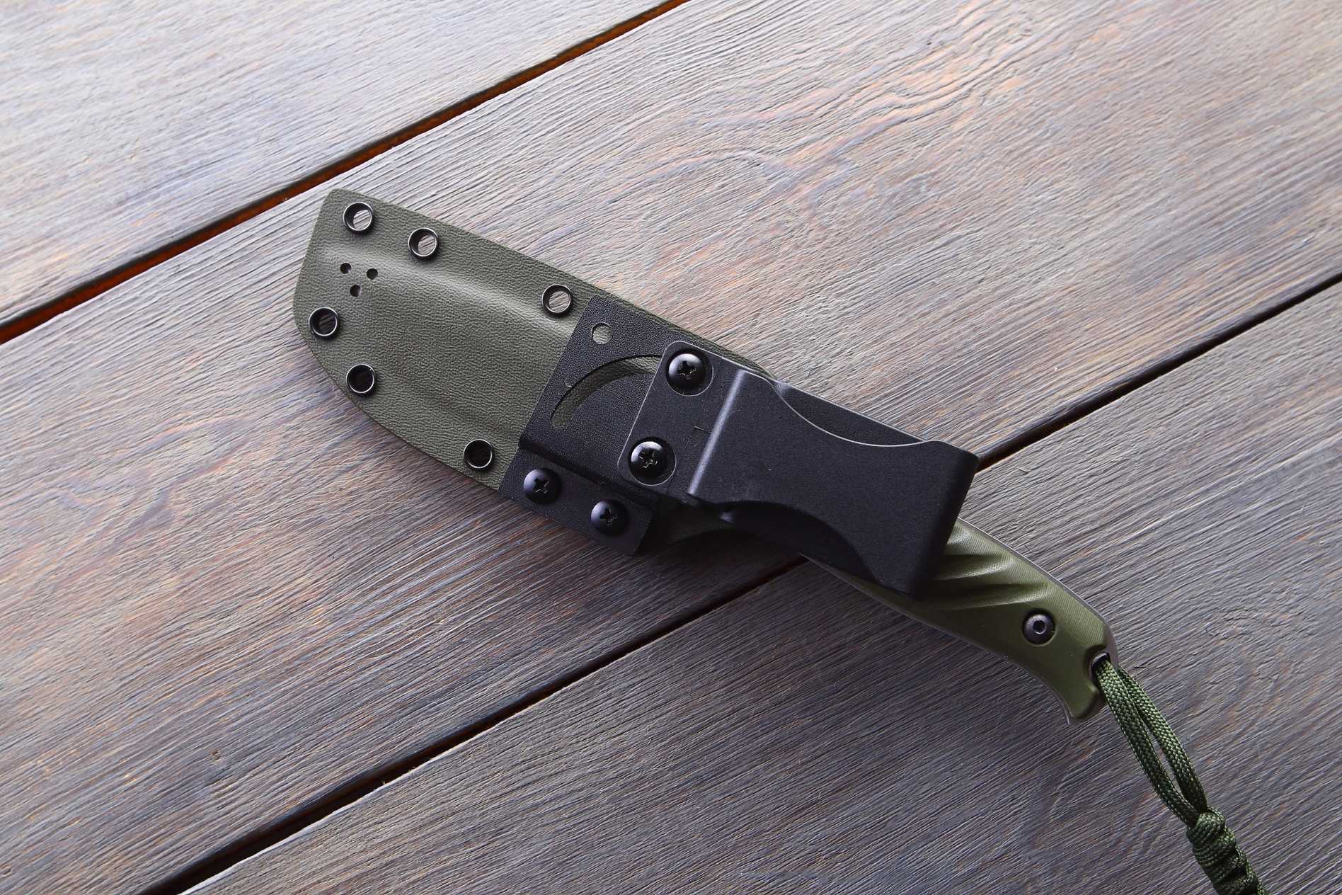 Ніж поставляється з кайдексовими ножнами, що дозволяють зручно носити ніж на поясі або рюкзаку. Поворотна кліпса забезпечує зручне і швидке кріплення ножа до спорядження, що дає легкий доступ до нього у будь-який момент, не втрачаючи зручності транспортування.