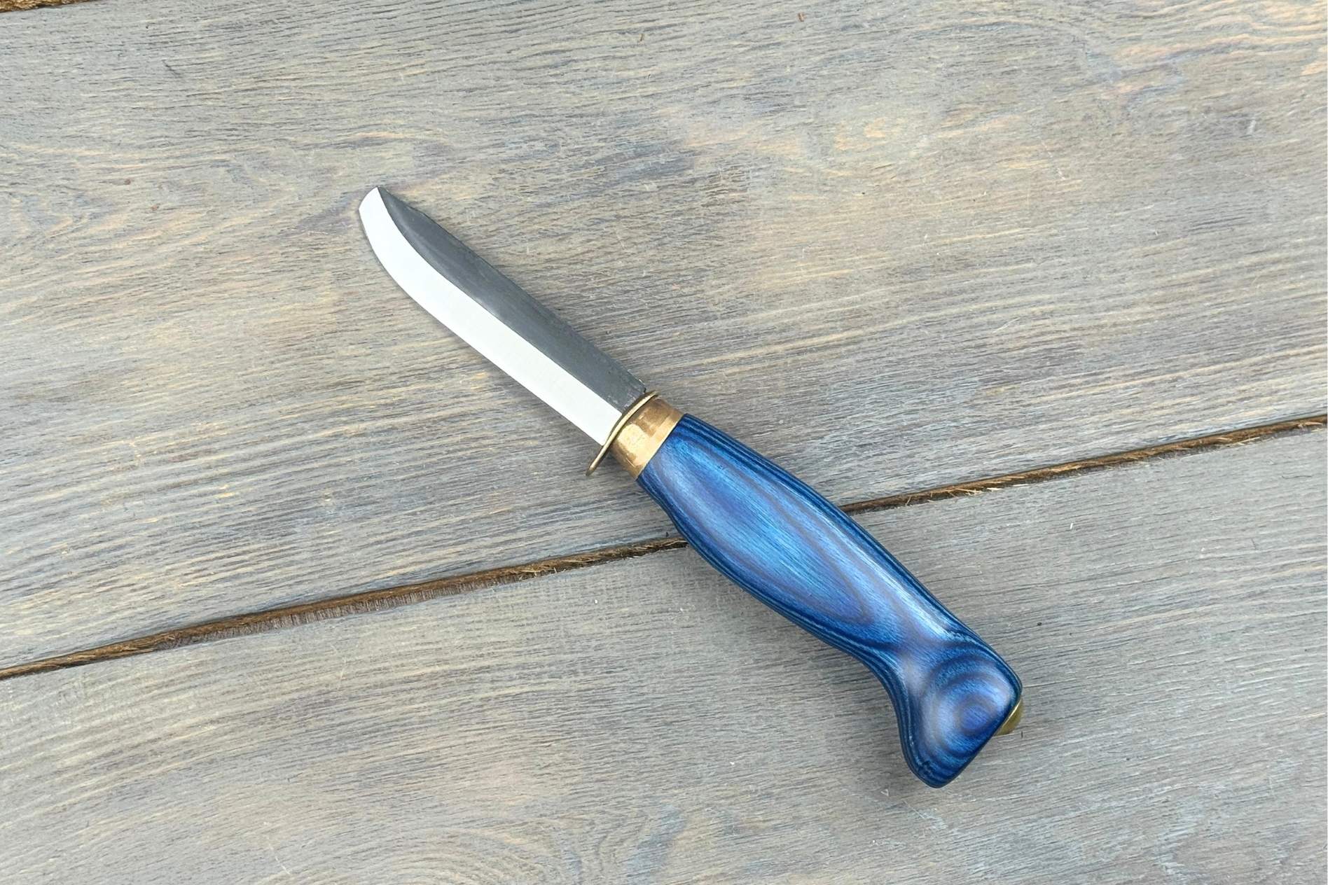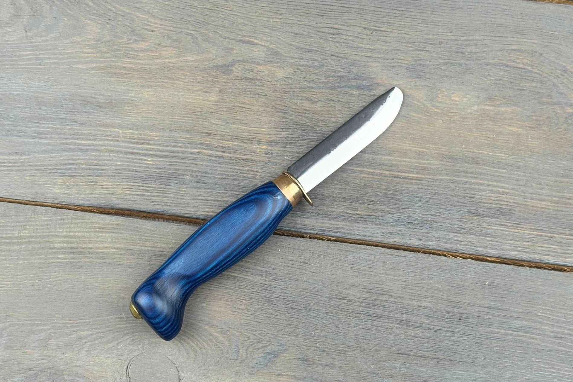 Child’s First Knife Blue (Wood Jewel) — це спеціально створений компактний фіксований ніж для знайомства дитини з основами роботи з ножем під наглядом дорослих. Модель поєднує просту, зрозумілу форму, малу вагу та зручне руків’я, що робить її оптимальним інструментом для навчання базових навичок різання, роботи з продуктами та дрібними матеріалами під час кемпінгу, сімейних подорожей і активного відпочинку.