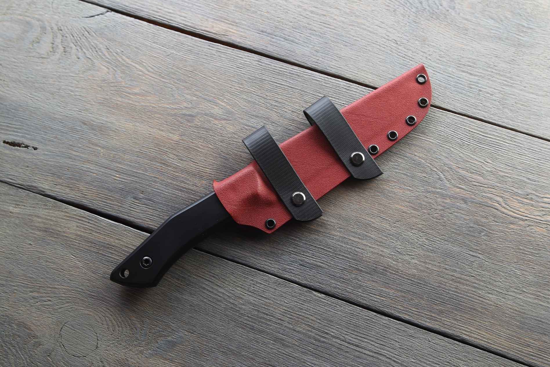 Ніж постачається з ножнами з кайдексу – зручного і міцного матеріалу, що гарантує надійний захист леза та легкість у догляді. Тип кріплення – стропа, що дає змогу зручно носити ніж на поясі чи на спорядженні, забезпечуючи швидкий доступ до інструмента під час роботи або активного відпочинку.