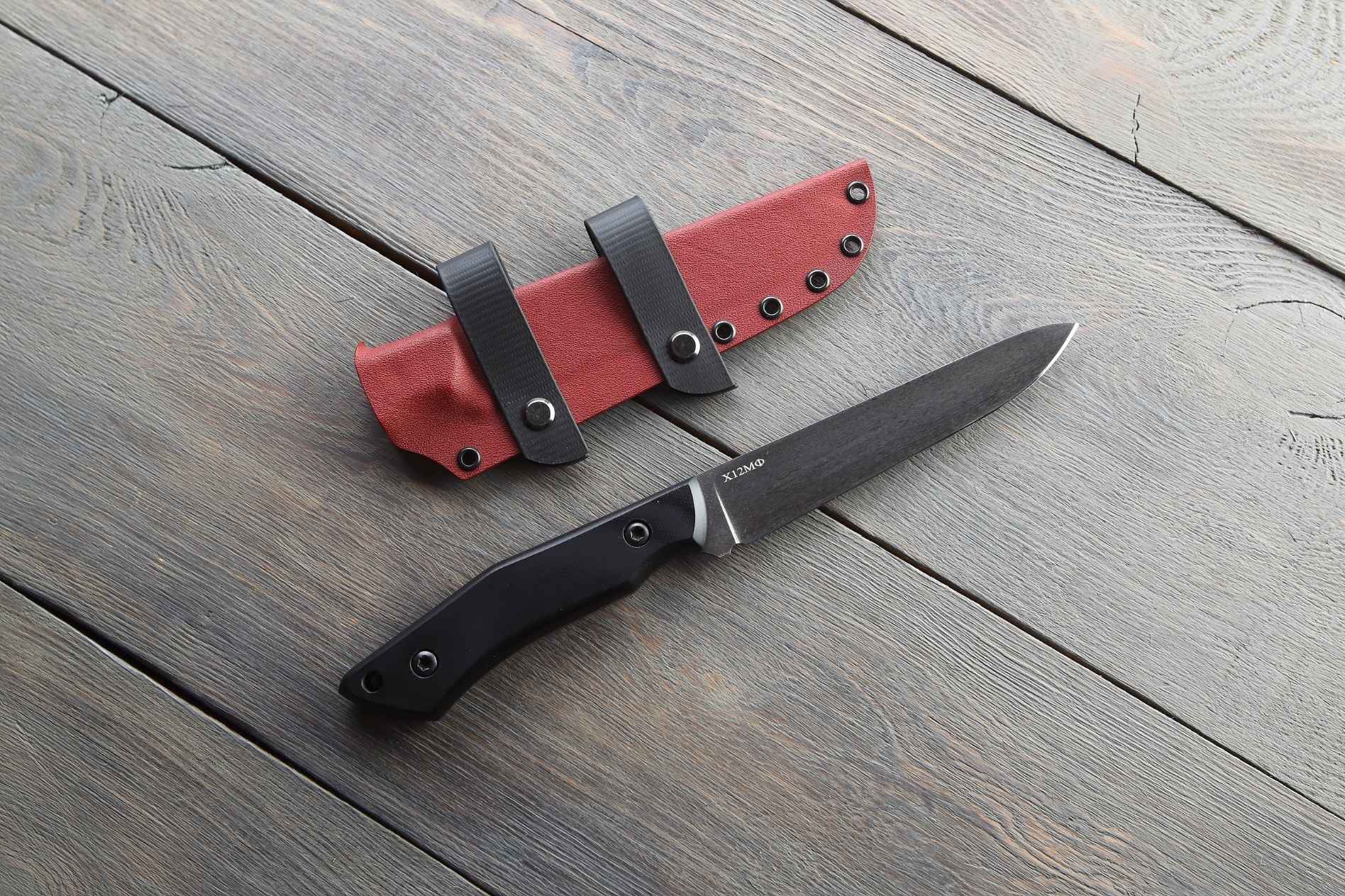Лезо ножа виготовлене з інструментальної штампованої сталі Х12МФ – відомою своєю міцністю та стійкістю до зношування. Твердість сталі – 60 HRC, що забезпечує тривалу гостроту і високу зносостійкість навіть при інтенсивному використанні. Товщина леза 2.5 мм робить ніж досить тонким для точних різів, але при цьому достатньо міцним для обробки.