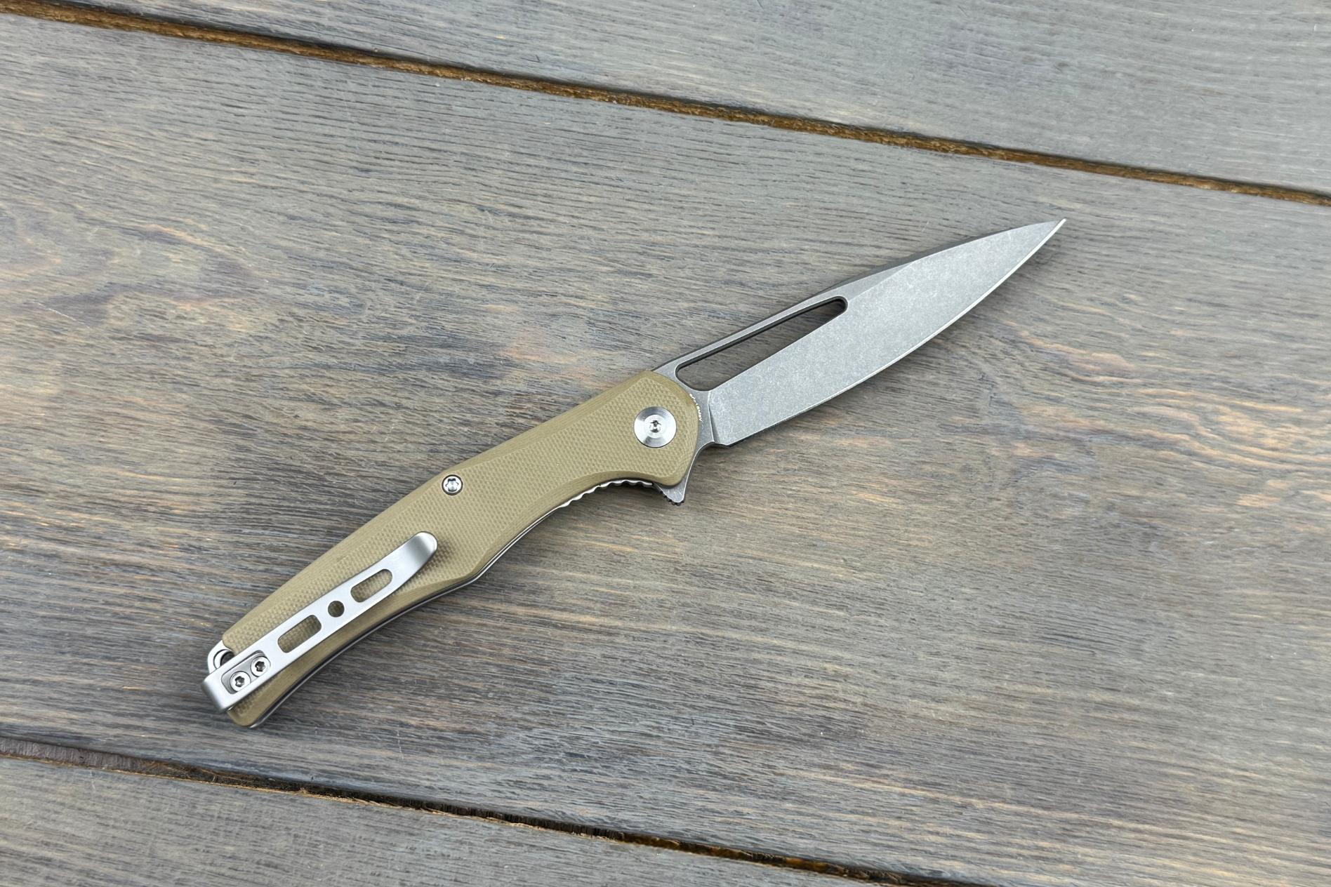 Руків’я довжиною 105 мм виготовлене з G10 — міцного склопластику, що відомий своєю легкістю, стійкістю до механічних пошкоджень і відмінним зчепленням із рукою.