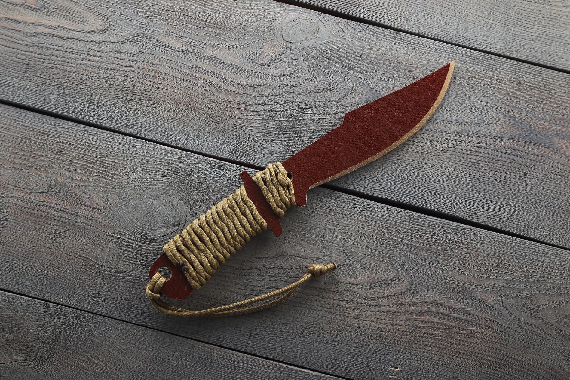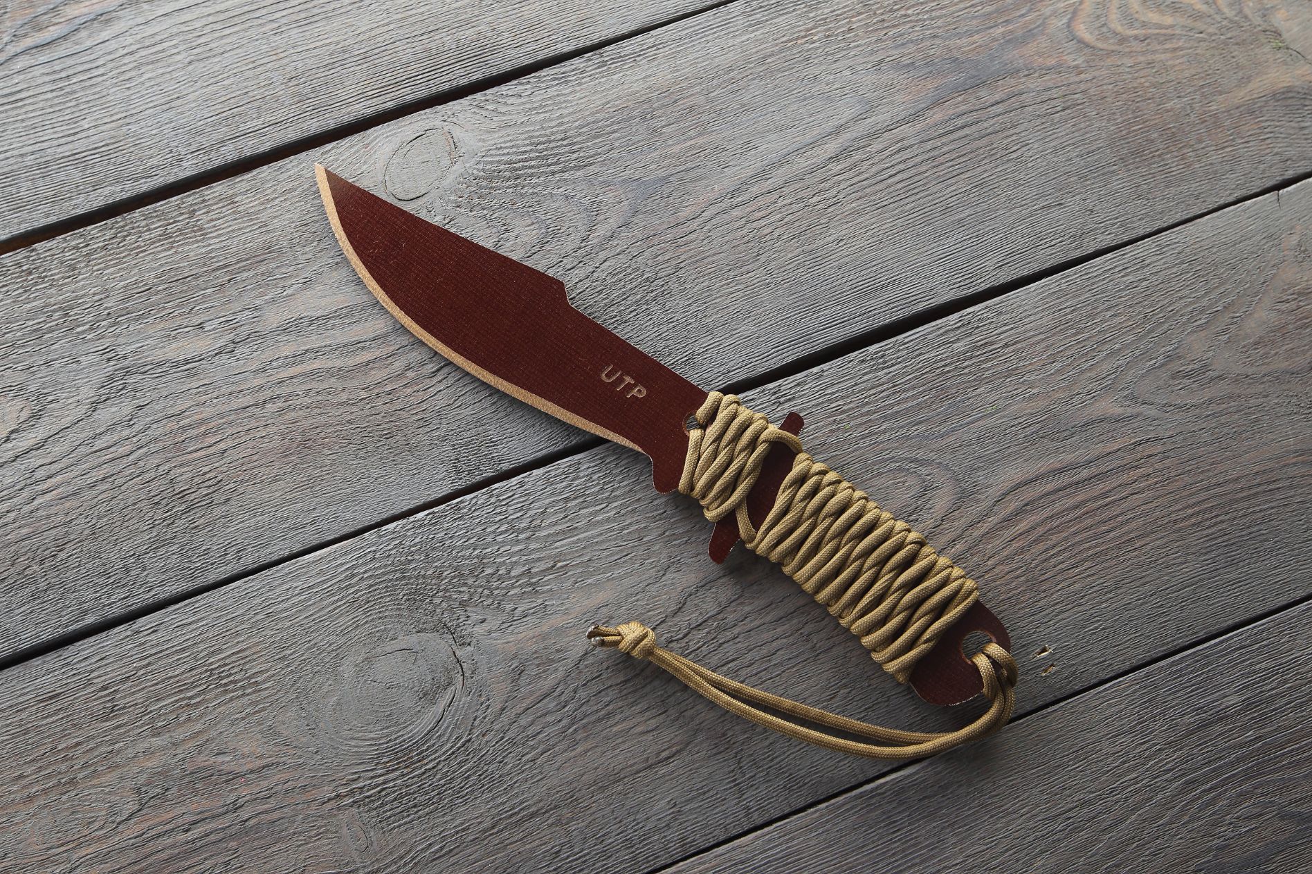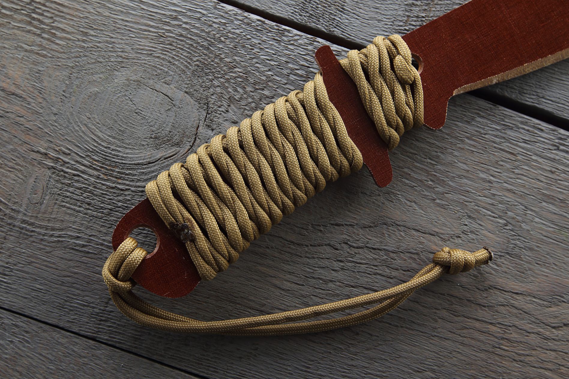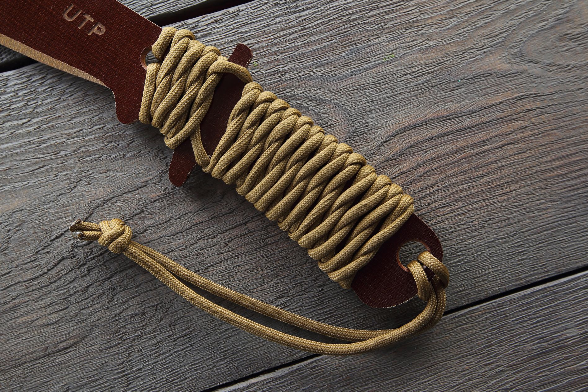 Паракорд на руків’ї: Руків’я ножа обмотане паракордом, що забезпечує зручний та надійний хват. Паракорд – міцний та стійкий матеріал, який не ковзає в руці, що особливо важливо для забезпечення якісного зціплення з рукою під час виконання саперських операцій.