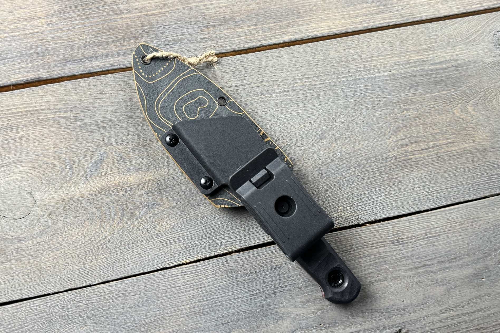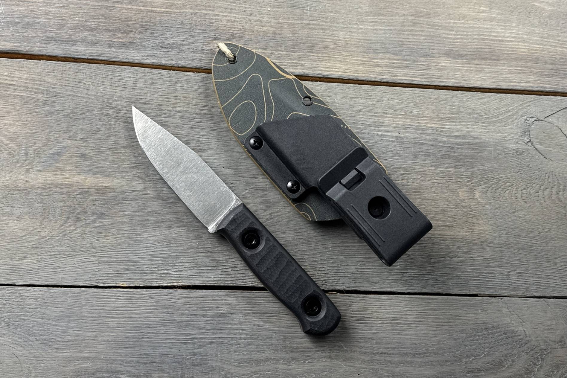 Ніж комплектується кайдексовими ножнами з пластиковою поворотною кліпсою, що дозволяє змінювати положення кріплення.