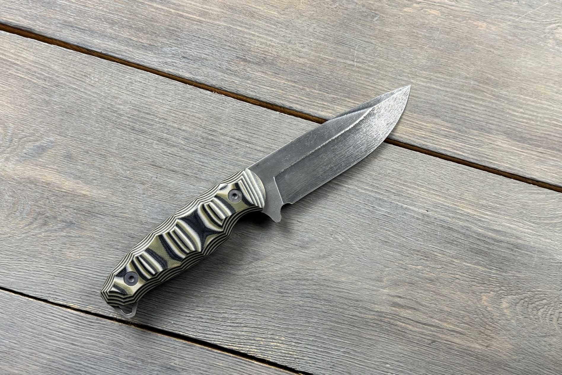 Руків’я ножа виготовлене з G10 — композитного матеріалу, який відомий міцністю, стабільністю та стійкістю до вологи.