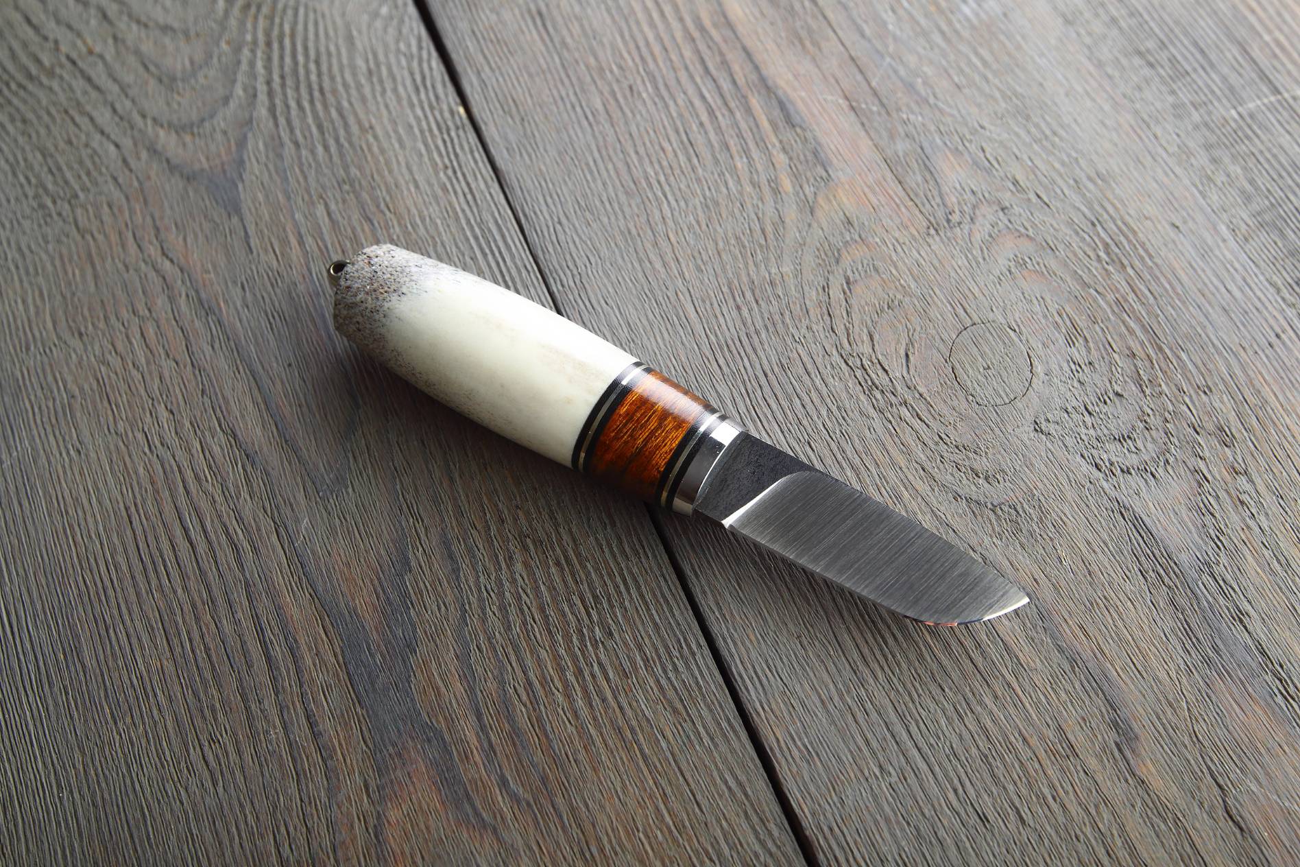 Ніж Едельвейс від майстра Knify — це поєднання класичних традицій та сучасних технологій. Він стане вірним помічником для тих, хто цінує високу якість і стиль. Лезо з міцної сталі Х12МФ, руків’я з рогу лося, залізного дерева та шкіряні ножни роблять цей ніж не тільки ефективним інструментом, але й красивим предметом для колекції.