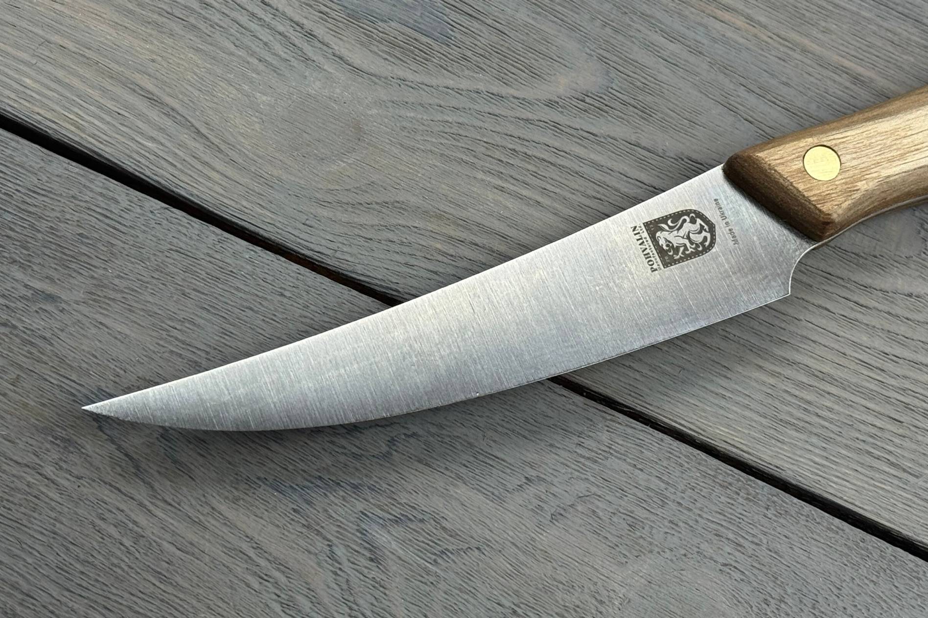 Філейний ніж Pohvalin — це обов’язковий елемент кухонного набору для тих, хто цінує точність і зручність. Він дозволяє працювати швидко, чисто й без зайвих зусиль.Коли треба акуратно обробити продукт — кращого помічника годі й шукати. Сталь, гнучкість, натуральне дерево — усе, що потрібно для впевненої кулінарної роботи.