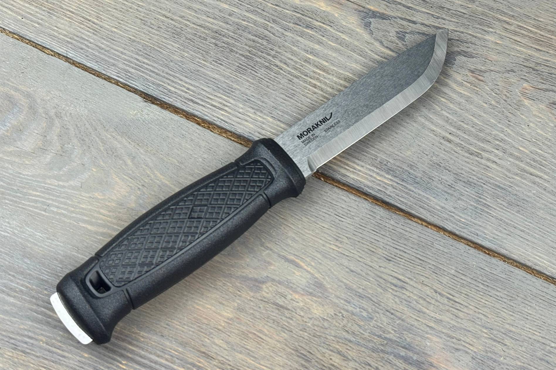 Руків’я довжиною 120 мм виготовлене з ударостійкого пластику чорного кольору. Воно стійке до вологи, перепадів температур і механічних навантажень, завдяки чому ніж зберігає функціональність навіть у складних умовах. Навіть при силових завданнях руків’я забезпечує надійний контроль та впевненість у кожному русі.