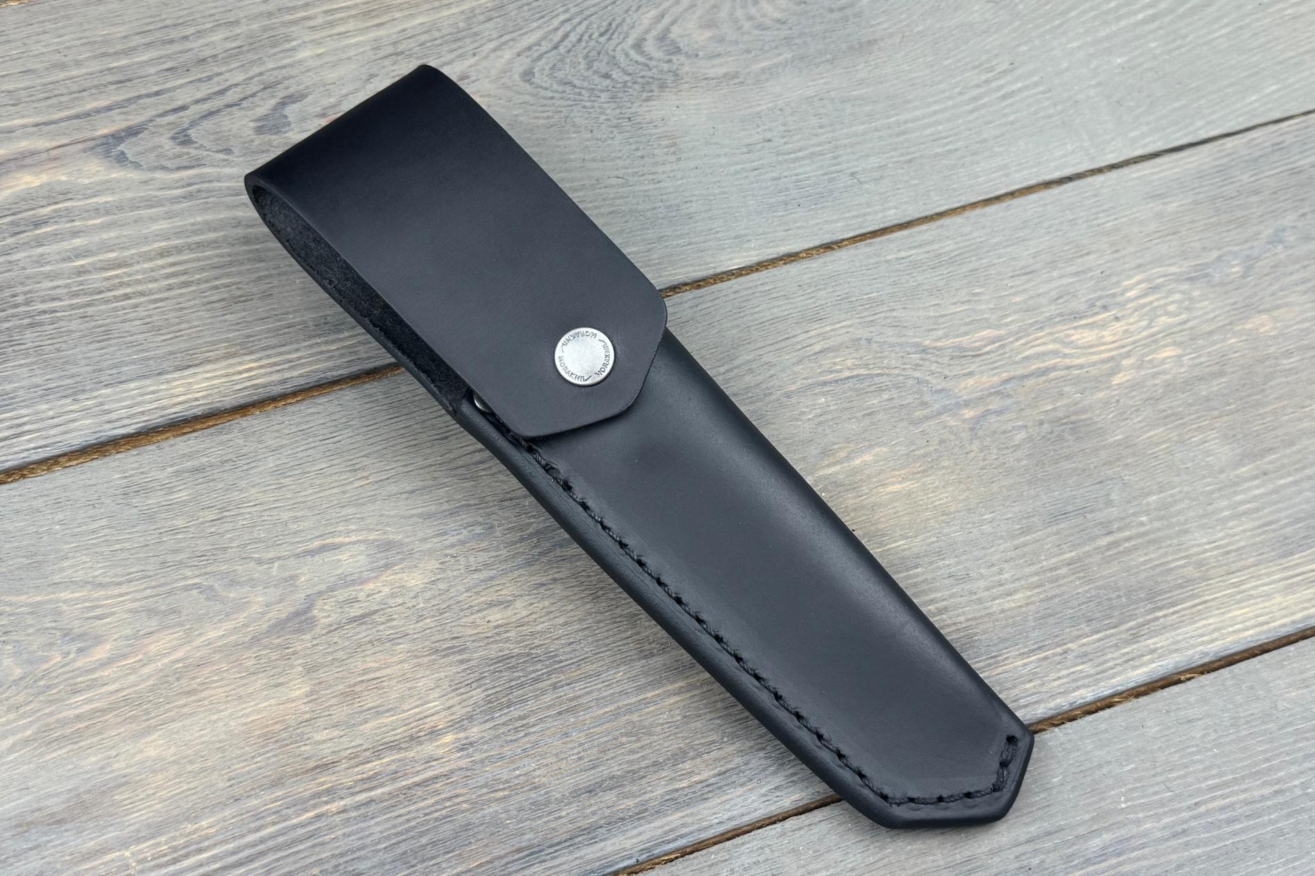 У цій версії ніж постачається зі шкіряними ножнами. Вони міцні, надійні й забезпечують довготривале зберігання ножа. Ножни зручно носити на поясі, вони забезпечують легкий доступ до ножа та його безпечне транспортування.