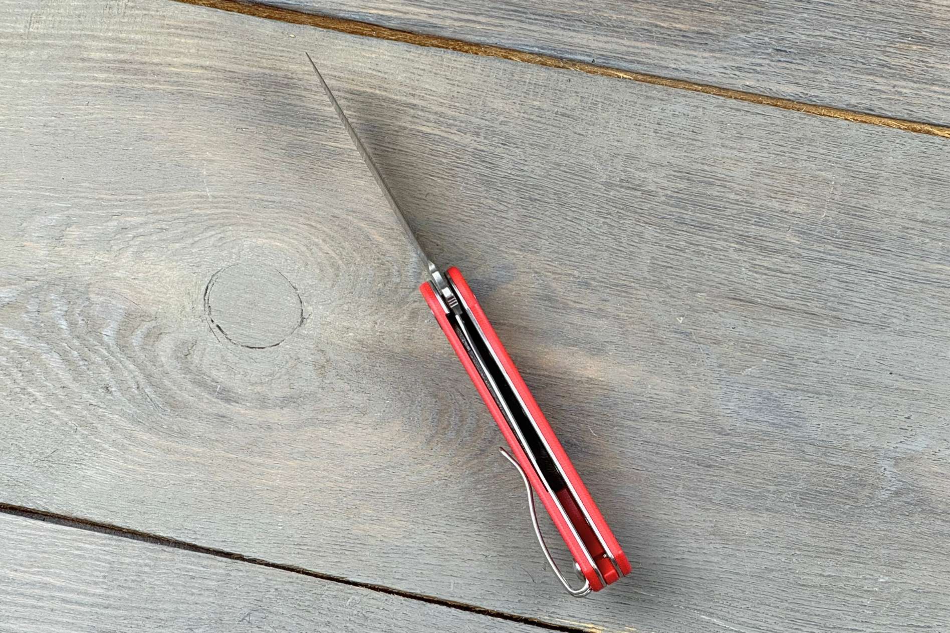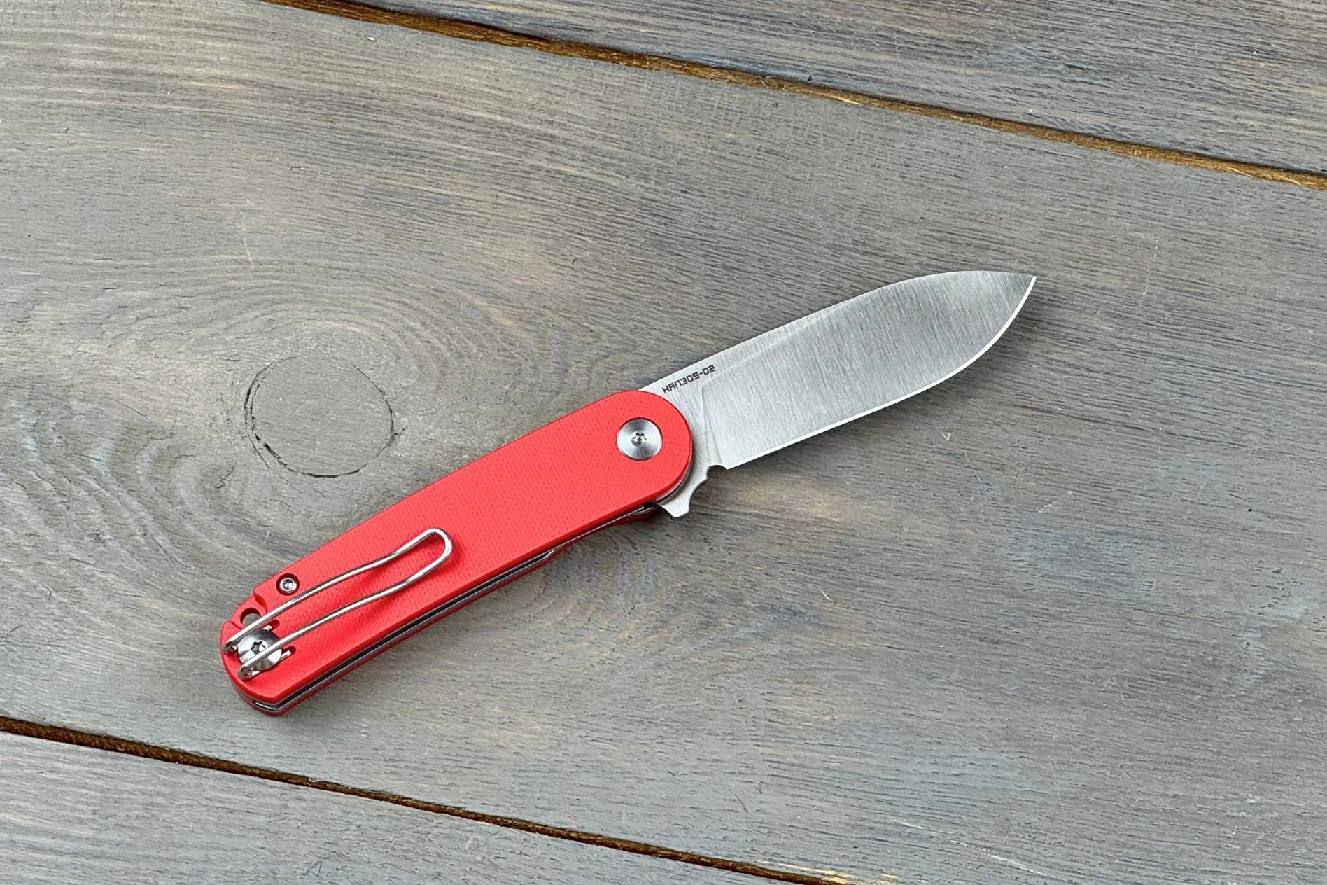 Руків’я виконане з червоного G10 — легкого та надміцного склопластику, який забезпечує надійне зчеплення з долонею. Матеріал стійкий до вологи, перепадів температур та механічних впливів, а яскравий колір додає ножу індивідуальності. Завдяки невеликій вазі (64 г) цей кишеньковий ніж g10 практично не відчувається у кишені, але при цьому зберігає відмінну жорсткість конструкції.