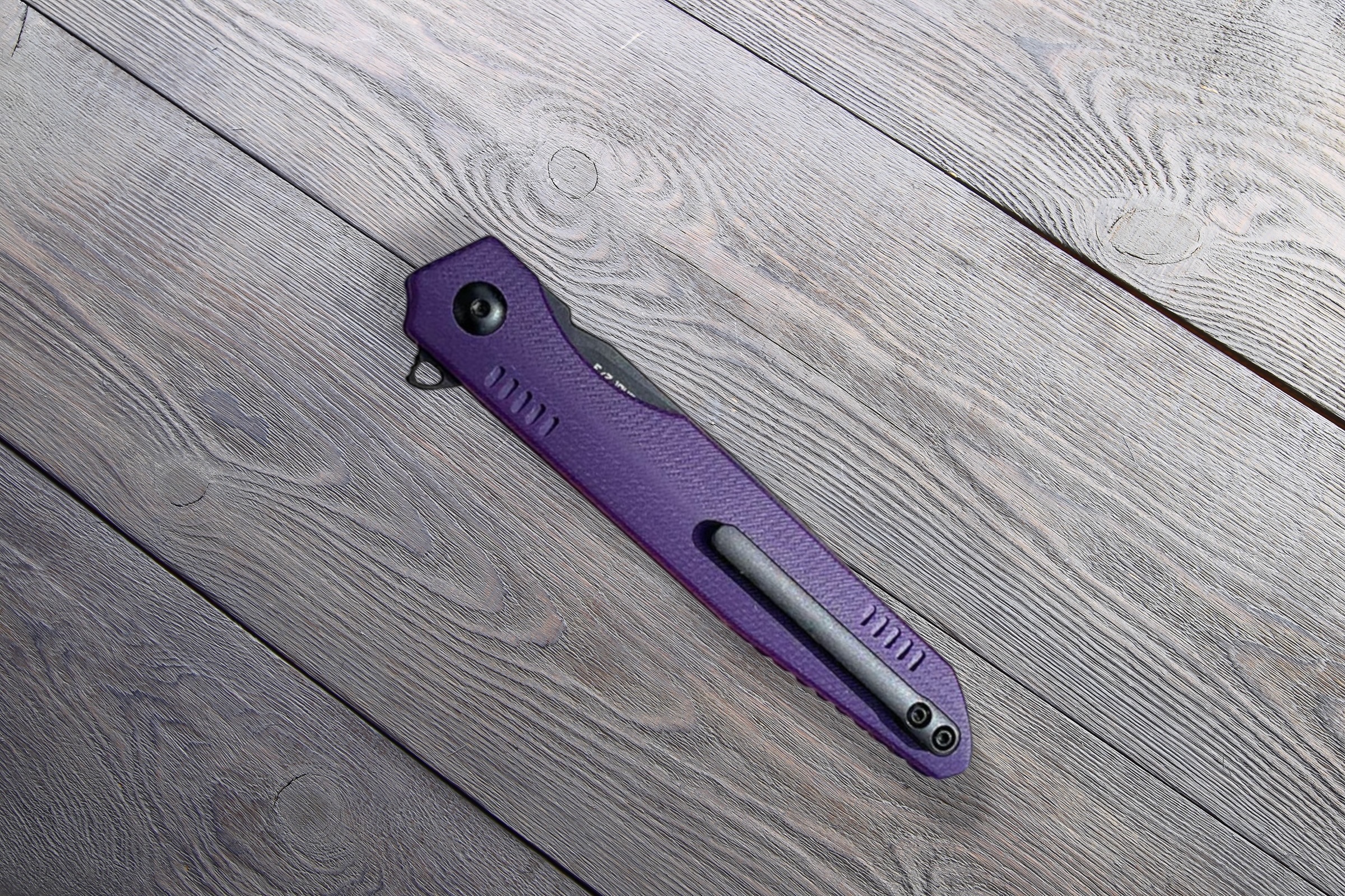 Руків’я з фіолетового G10 виглядає незвично й стильно. Матеріал витримує удари, вологу та різкі зміни температури, а текстурована поверхня гарантує надійне зчеплення навіть у складних умовах. Ергономічна форма дозволяє працювати довго без втоми.