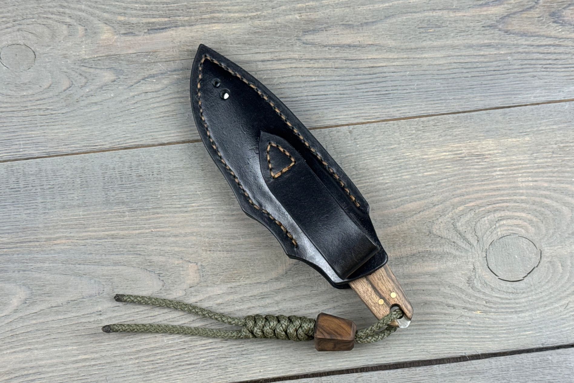 До ножа додаються шкіряні ножни, що захищають клинок від подряпин та вологи.