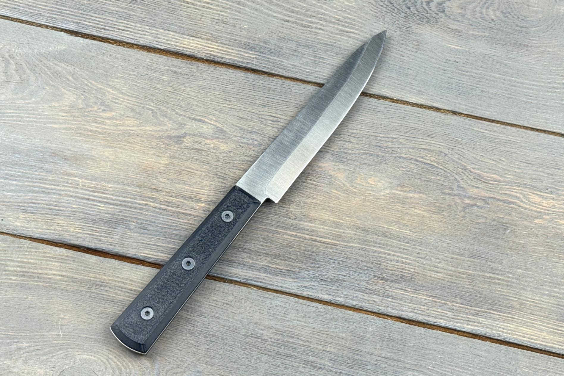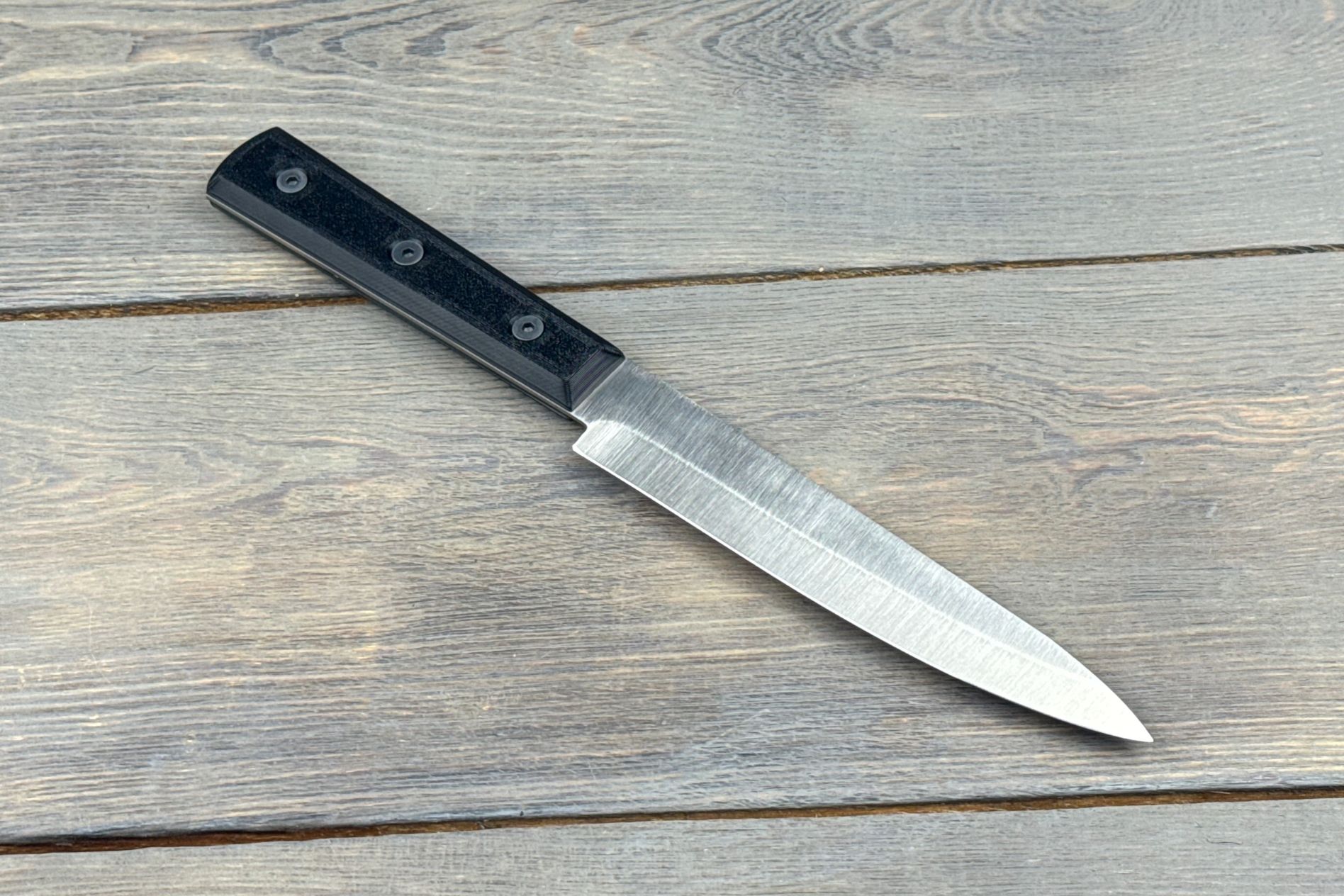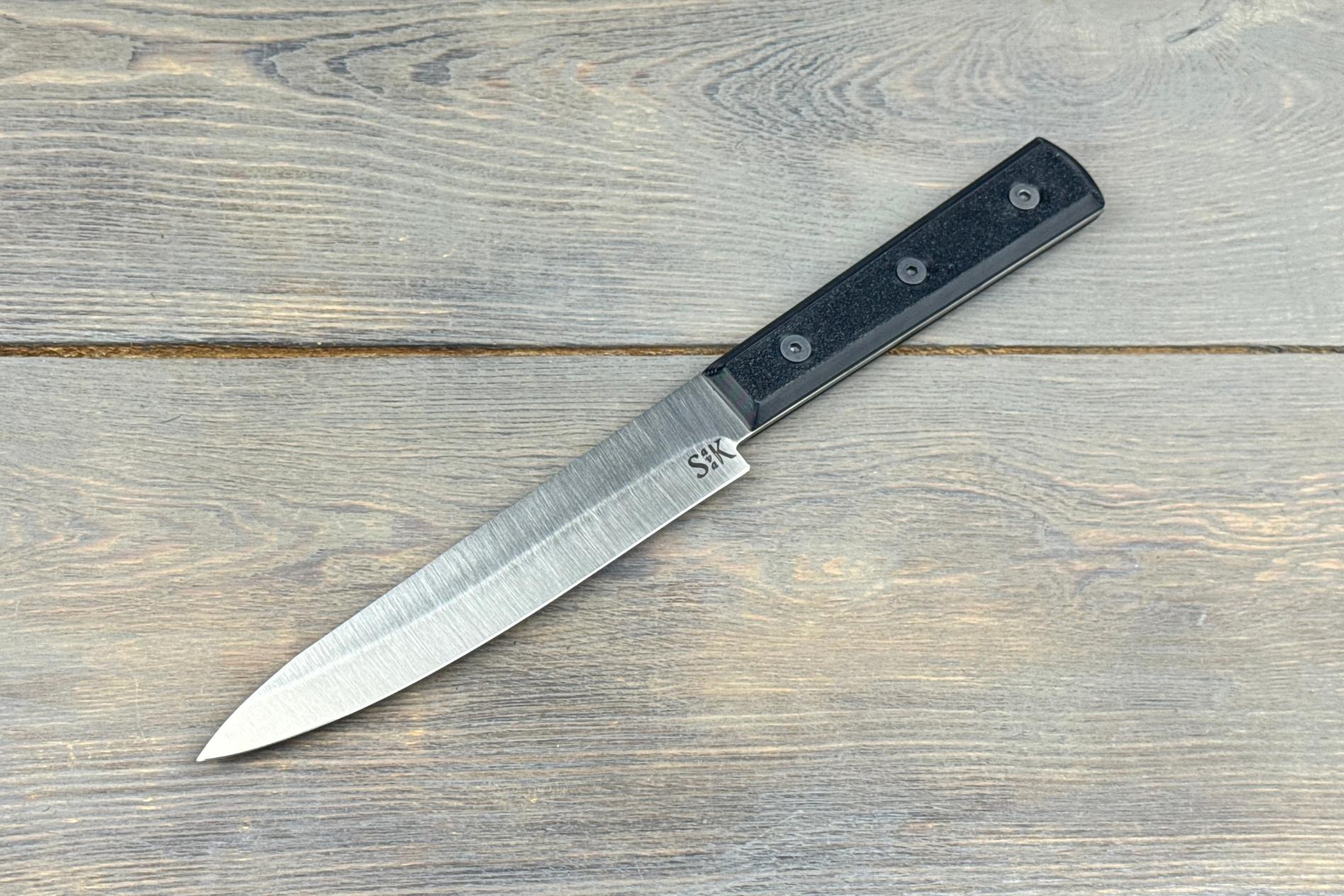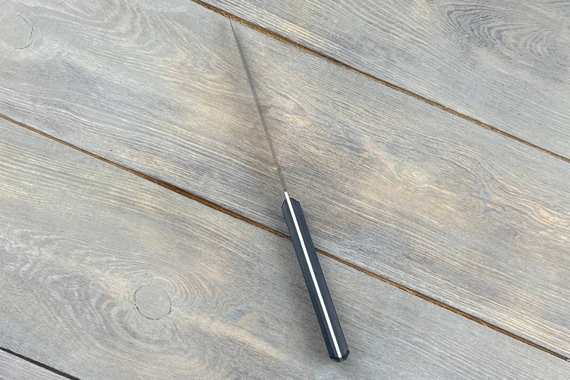Клинок виготовлений зі сталі EN 1.4116, яка вважається однією з найкращих для кухонних ножів завдяки своїй корозійній стійкості та оптимальному балансу твердості й гнучкості. Твердість 58–59 HRC дозволяє лезу зберігати гостроту протягом тривалого часу. Довжина 170 мм робить його ідеальним для обробки великих інгредієнтів. Товщина 2 мм забезпечує точність і легкість різу, дозволяючи робити рівні та чисті зрізи. Геометрія клинка робить ніж універсальним: він легко справляється як із філеюванням, так і з підготовкою продуктів до подальшого приготування.