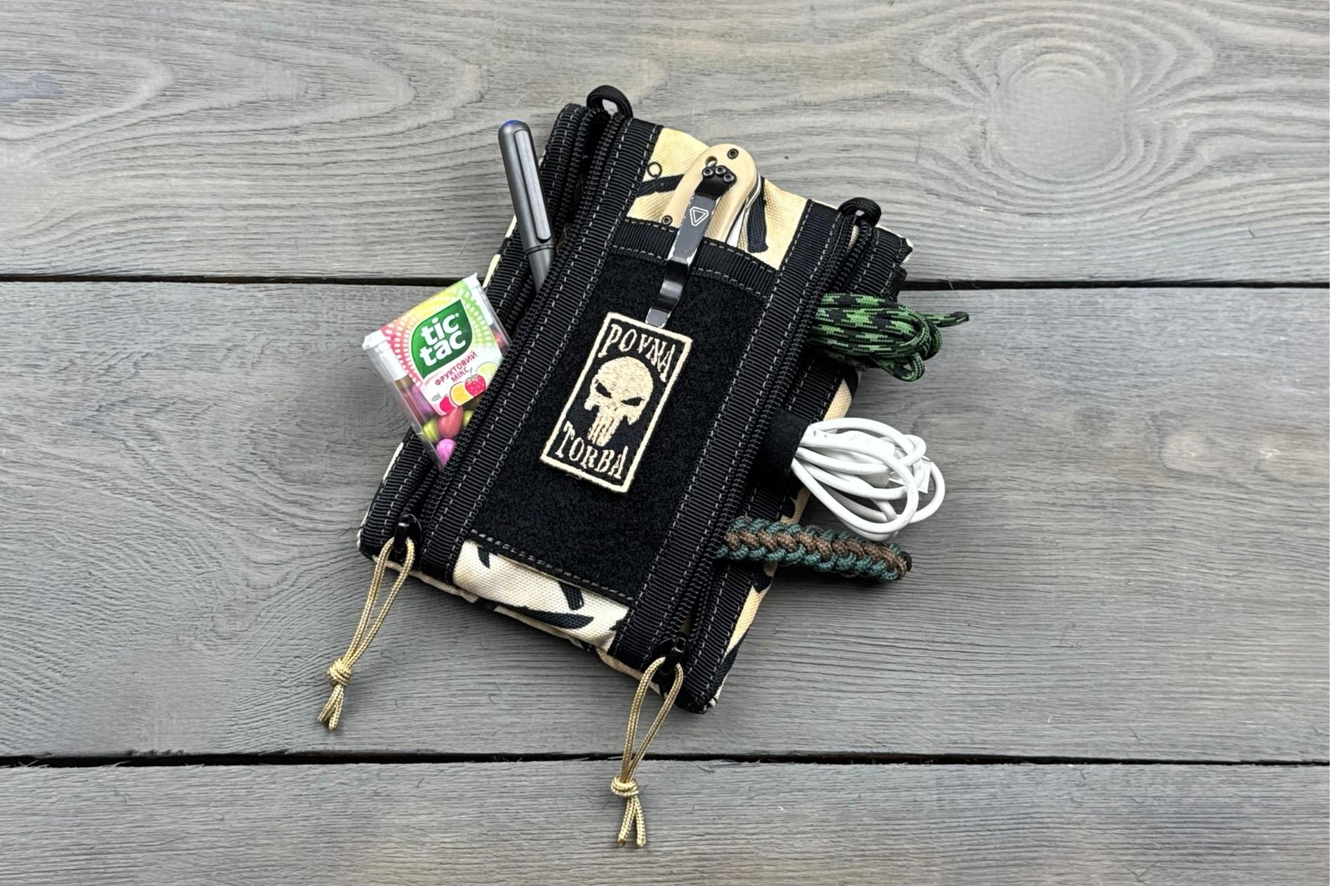 Басман M Coyote (Povna Torba) — це середній EDC органайзер у форматі гаманця, створений для тих, хто хоче мати більше простору для зберігання речей, не жертвуючи зручністю. У ньому легко вмістити базовий набір на щодень: ніж, ліхтарик, кабелі, картки, аптечку, ключі.
