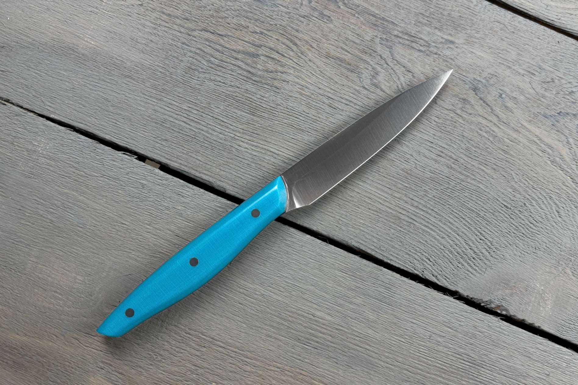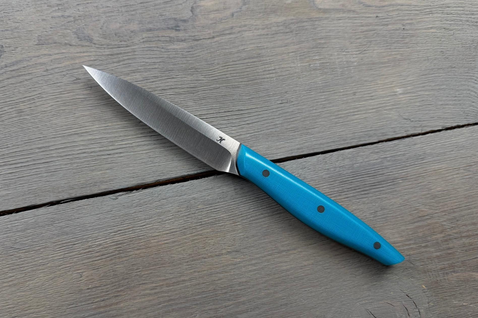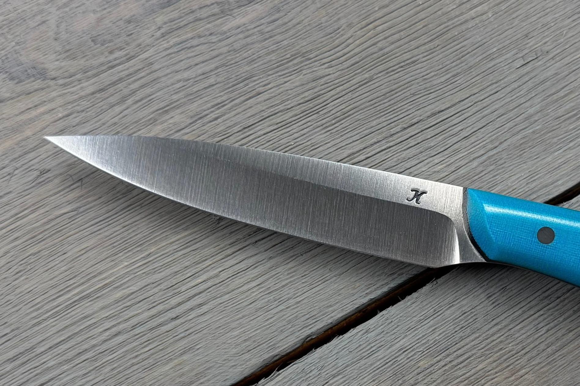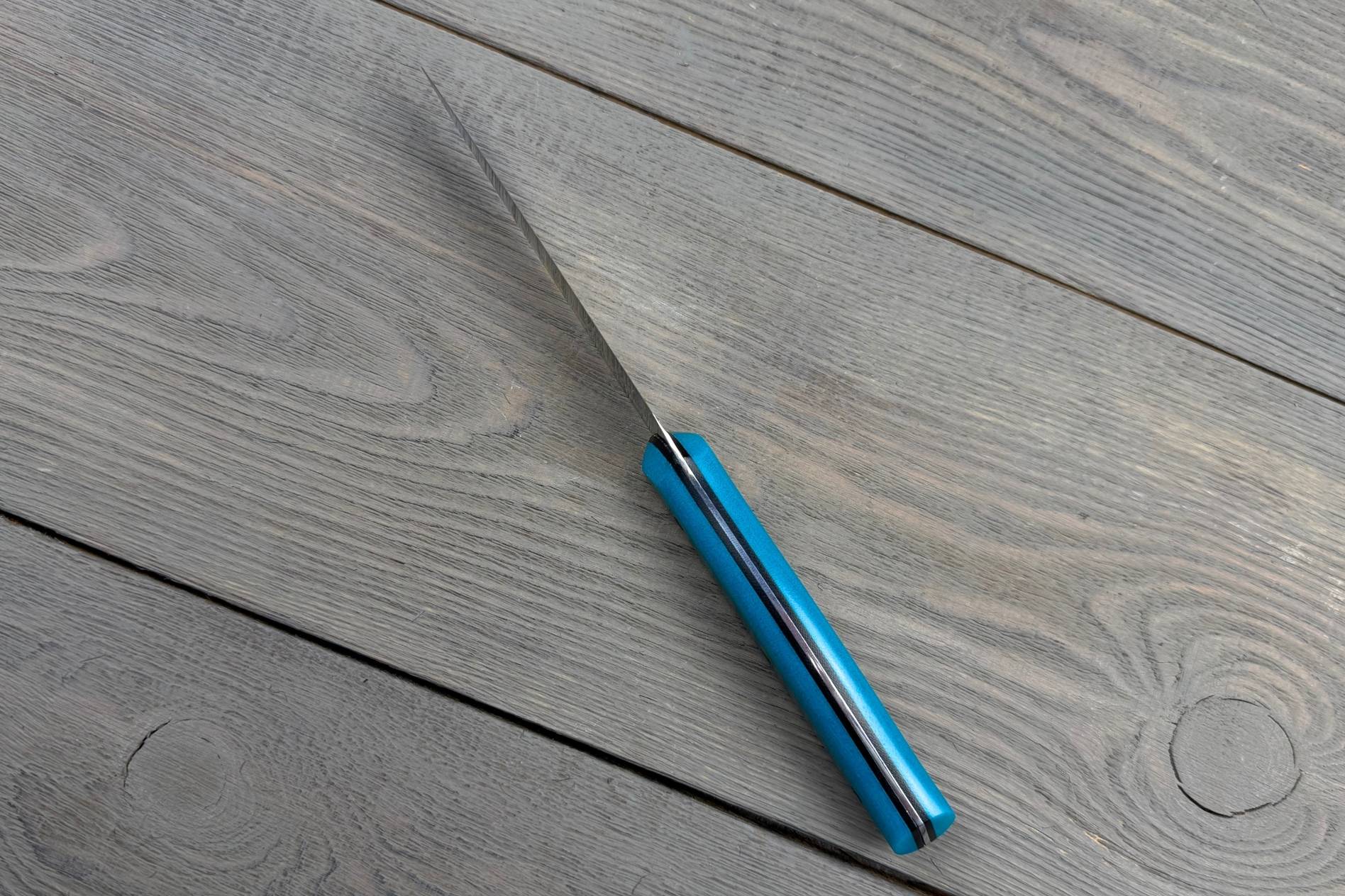Овочевий ніж Blue від Майстерні Олександра Крутька — це авторський кухонний інструмент для роботи з овочами, фруктами, зеленню та іншими делікатними продуктами. Компактна форма, м’які лінії, зручне руків’я і збалансована вага роблять Blue універсальним помічником, який легко контролювати навіть при тривалому приготуванні їжі. Це ніж, який приємно тримати в руці та зручно використовувати щодня.