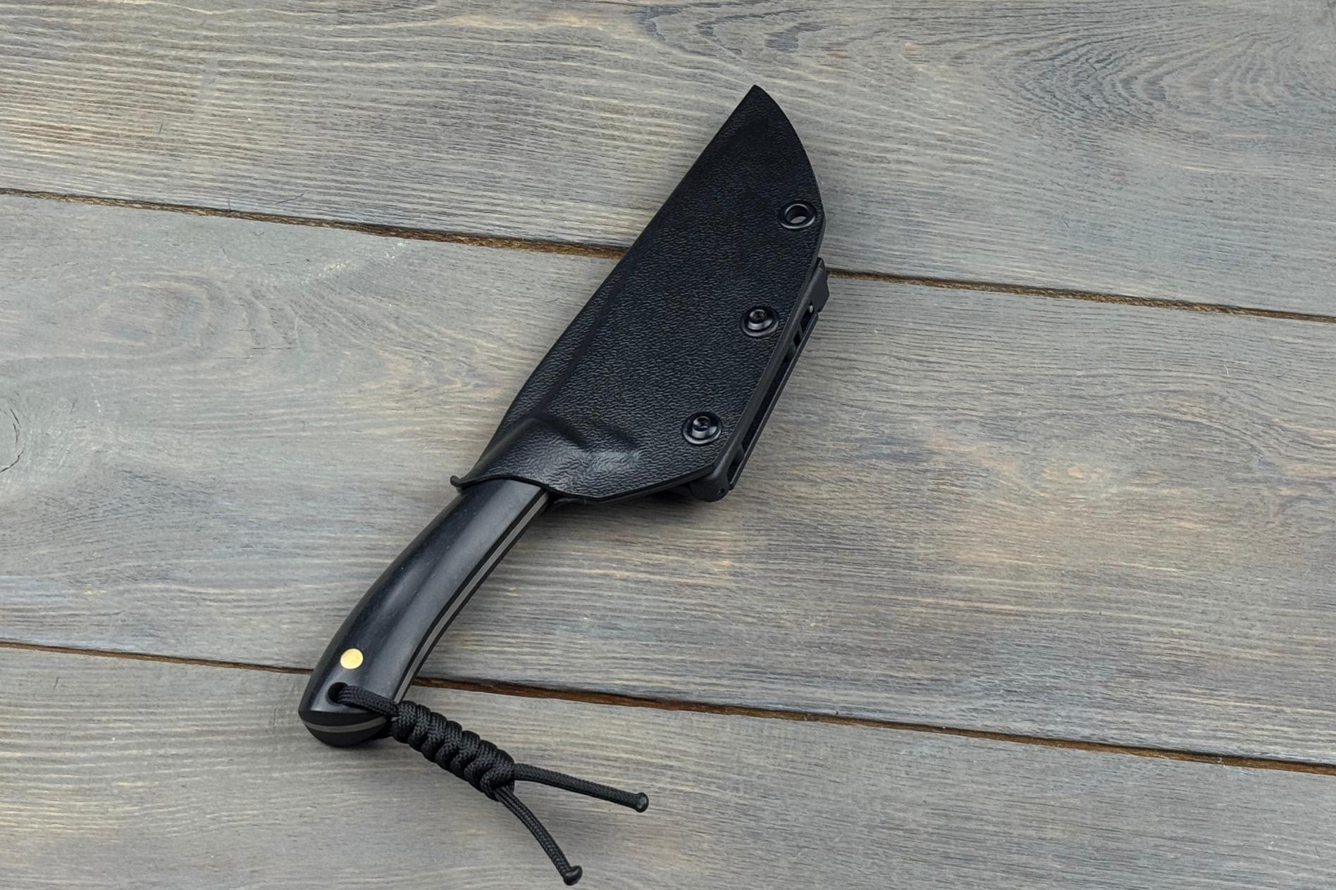 До ножа додаються ножни з кайдексу, які надійно фіксують клинок і забезпечують зручне носіння. Кайдекс вирізняється стійкістю до вологи та механічних впливів, що робить його ідеальним матеріалом для похідних ножен.