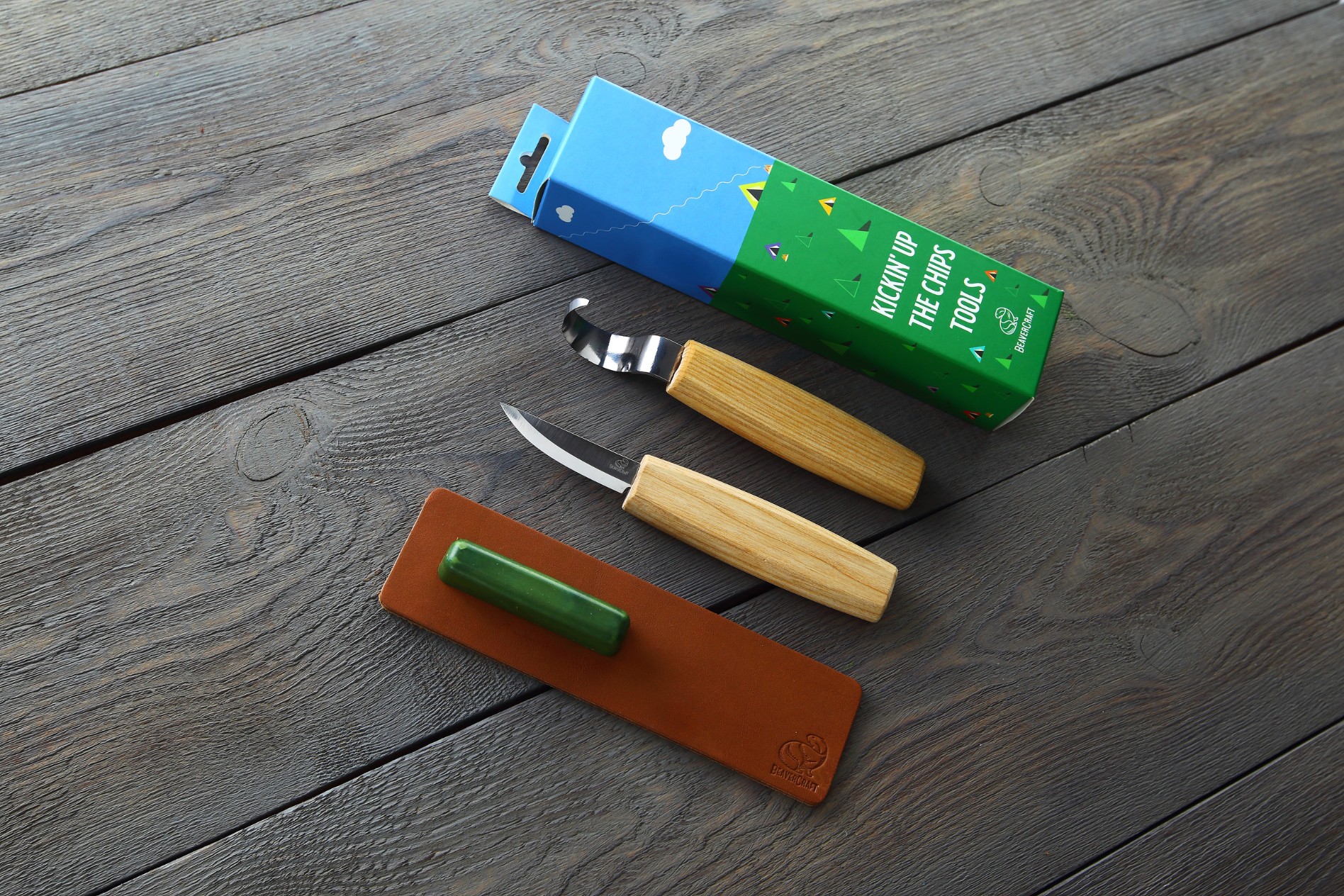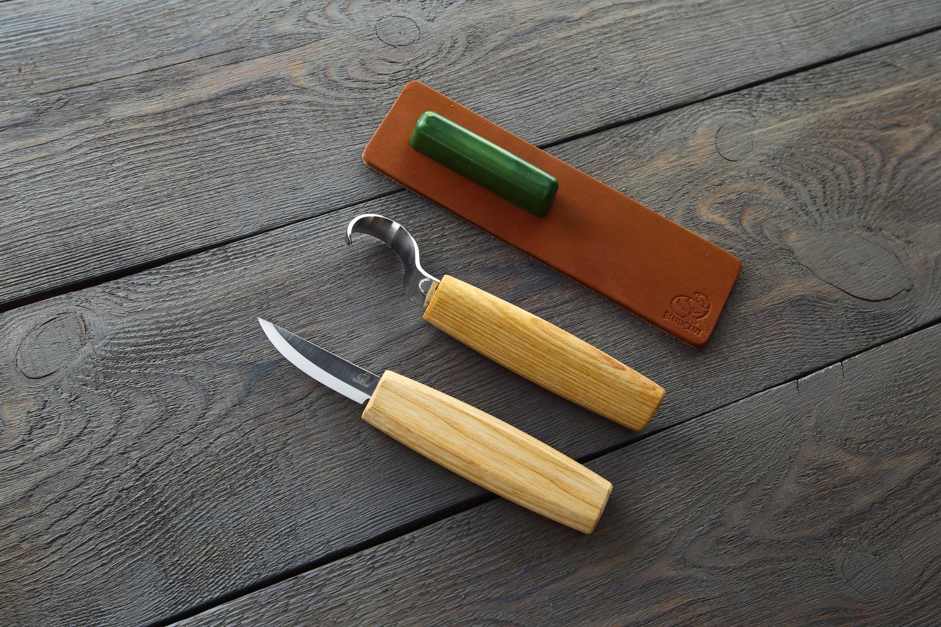 Інструменти виготовлені з міцної вуглецевої сталі 65Г (1066) і добре заточені, що дозволяє різати як м’яку, так і тверду деревину. Руків’я виготовлені з ясена та покриті олією, задля захисту від вологи та бруду. Крім того, до набору входять мікронна полірувальна суміш та шкіряна стропа, щоб леза залишалися гострими як бритва.
