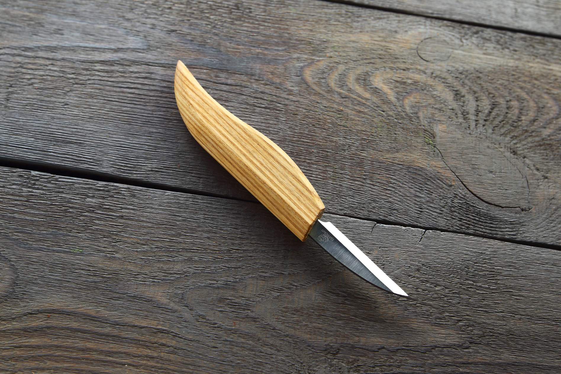 Ручка ножа виготовлена з високоякісного ясеня, що забезпечує зручний та надійний хват інструменту. Завдяки спеціальній комфортній формі ручки, ніж буде зручно лежати в будь-якій руці. Ви зможете працювати з ним без втоми протягом тривалого часу.