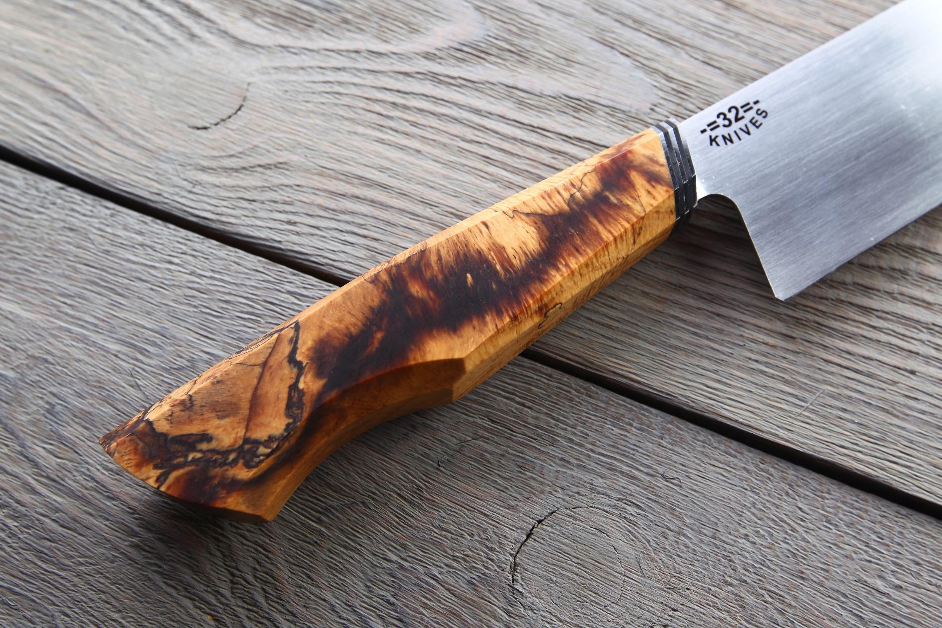 Шеф-ніж Oak від 32Knives — це кухонний інструмент, який поєднує натуральні матеріали, високоякісну сталь та майстерне виготовлення. Цей ніж підійде як для домашнього використання на щодень, так і як подарунок для поціновувача кулінарного мистецтва. Він створений, щоби надихати на нові кулінарні звершення — без обмежень, лише чисте задоволення від роботи.