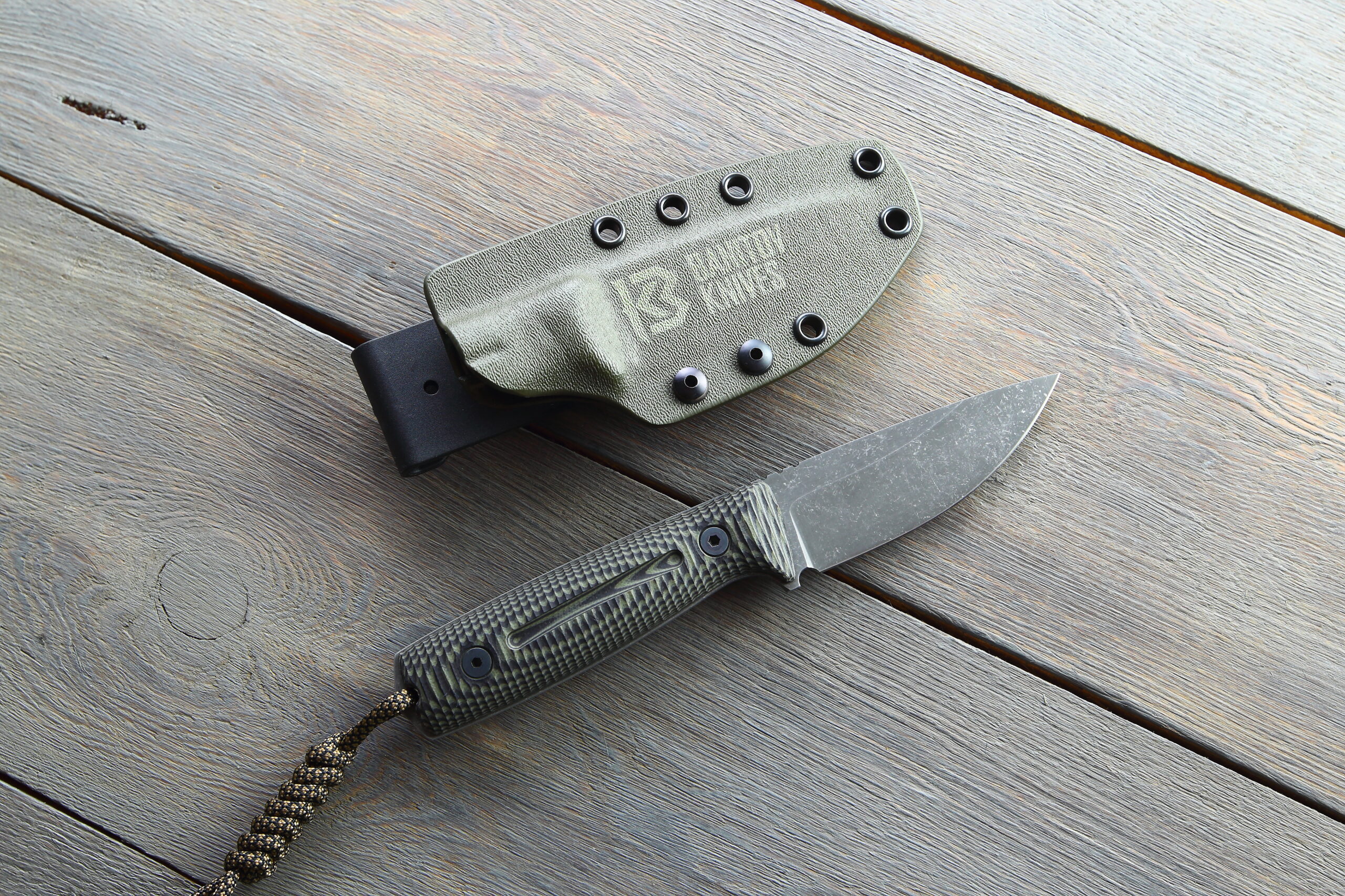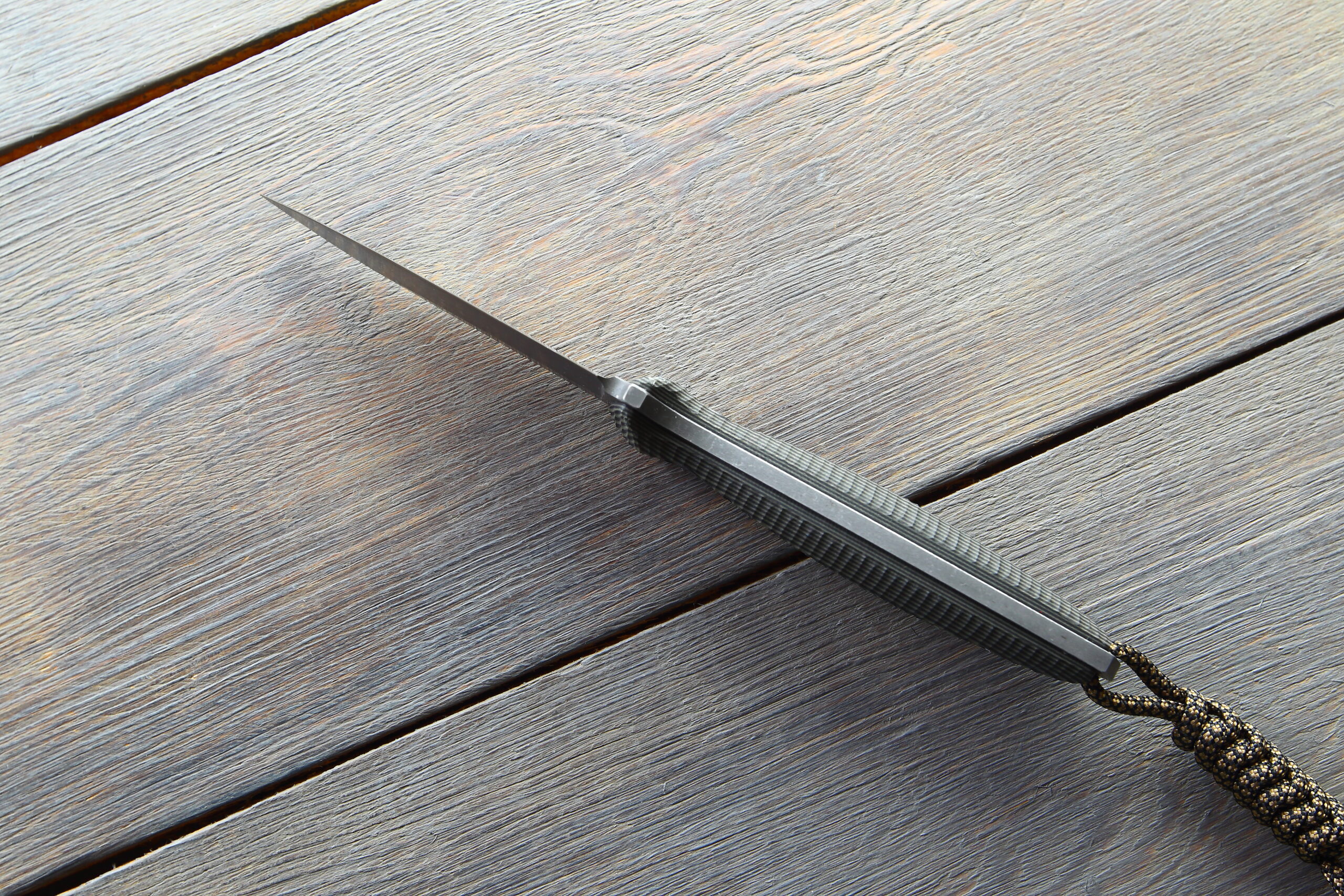 Руків’я ножа виготовлено з матеріалу G-10, який забезпечує надійний захват. Довжина руків’я становить 110 мм, що дозволяє комфортно утримувати ніж у руці навіть за складних умов.