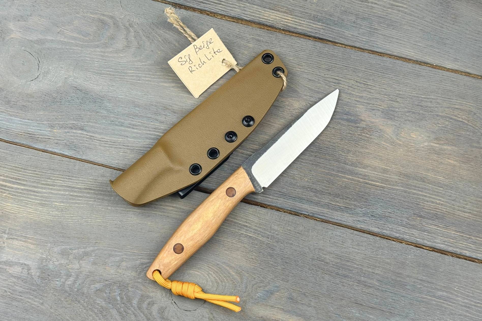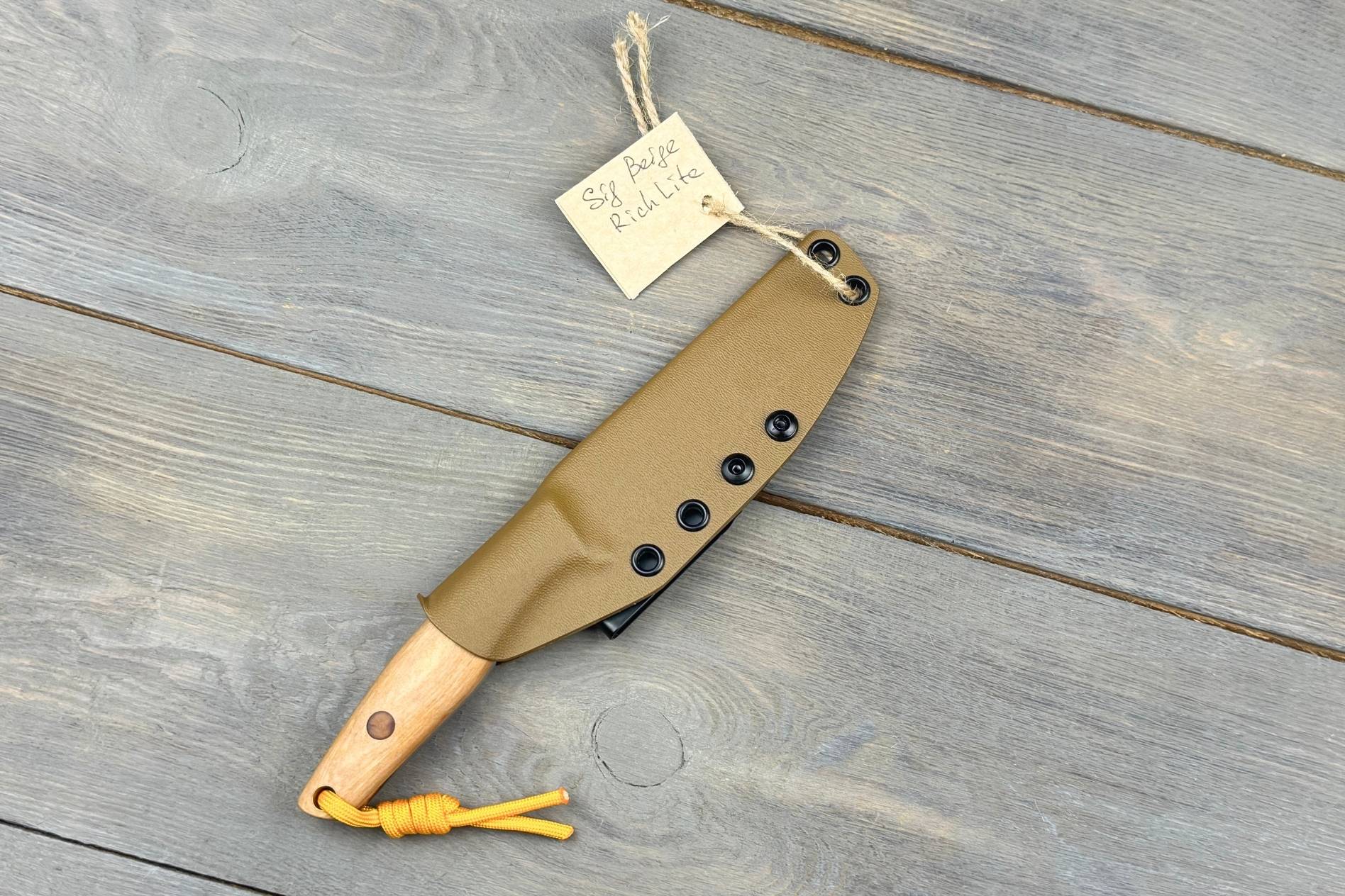 Руків’я виготовлене з Richlite — сучасного композитного матеріалу, створеного на основі паперу й смол. Він приємний на дотик, стійкий до вологи, перепадів температур і механічних впливів. Відтінок Beige додає ножу спокійного, класичного вигляду.