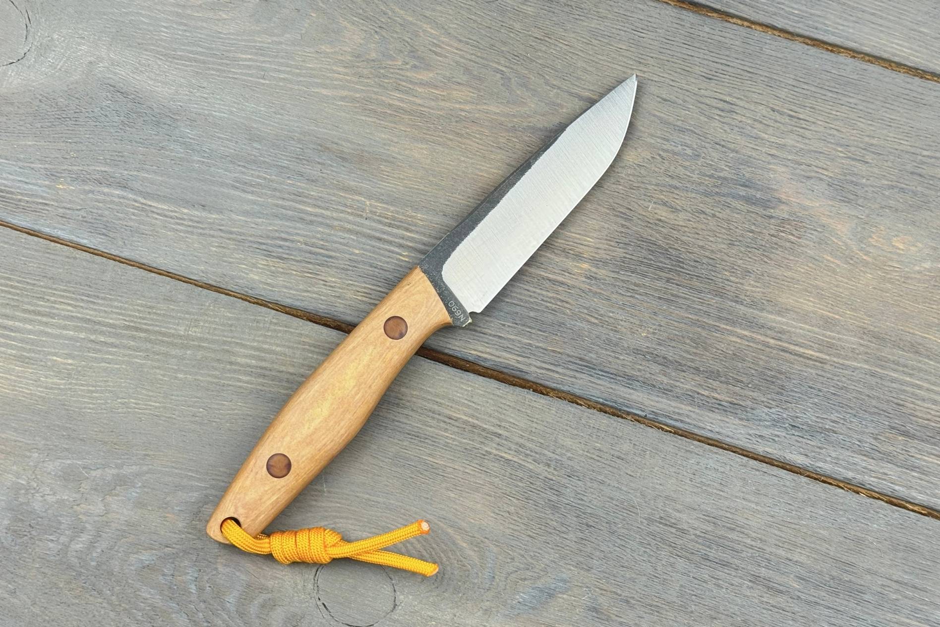 Клинок виготовлено з нержавіючої сталі N690 із твердістю 59–60 HRC. Вона забезпечує високу зносостійкість, чудово тримає заточку й не боїться вологи. Довжина леза 102 мм і товщина 3,7 мм забезпечують оптимальний баланс між міцністю та контрольованістю.