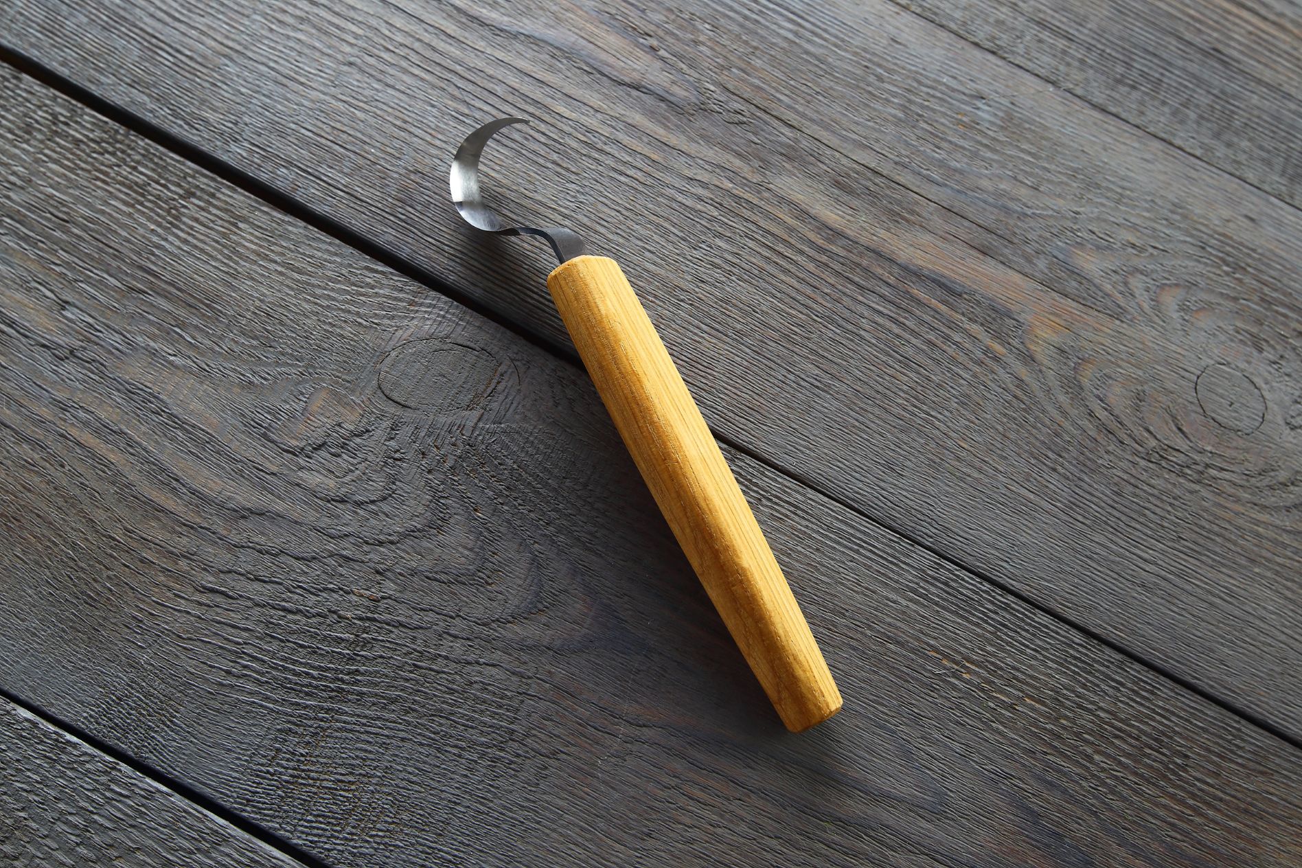 Ніж SK1 Oak призначений для ефективної та точної роботи по дереву без прикладання значних зусиль. Його форма і дизайн сприяють зручності при використанні та дозволять вам працювати швидко та захистять ваші руки. Цей гакоподібний ніж підійде для вирізьблення круглих заглиблень, тож буде дуже практичним у створенні ложок та тарілок. За своєю будовою цей ніж ідеальний для невеликих та акуратних виробів.