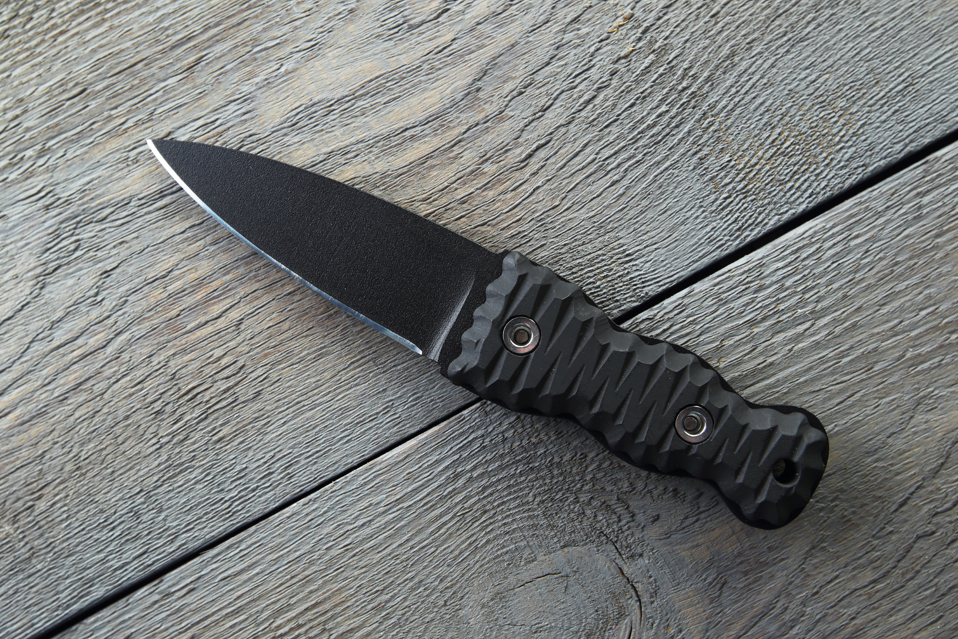 Руків’я виконане з міцного ABC-пластику, з текстурованими накладками для надійного та зручного хвату. Його особлива форма не лише створює естетичний вигляд, але й запобігає перекручуванню ножа в руці. Завдяки ергономічному дизайну, ніж комфортно тримати в будь-яких умовах.