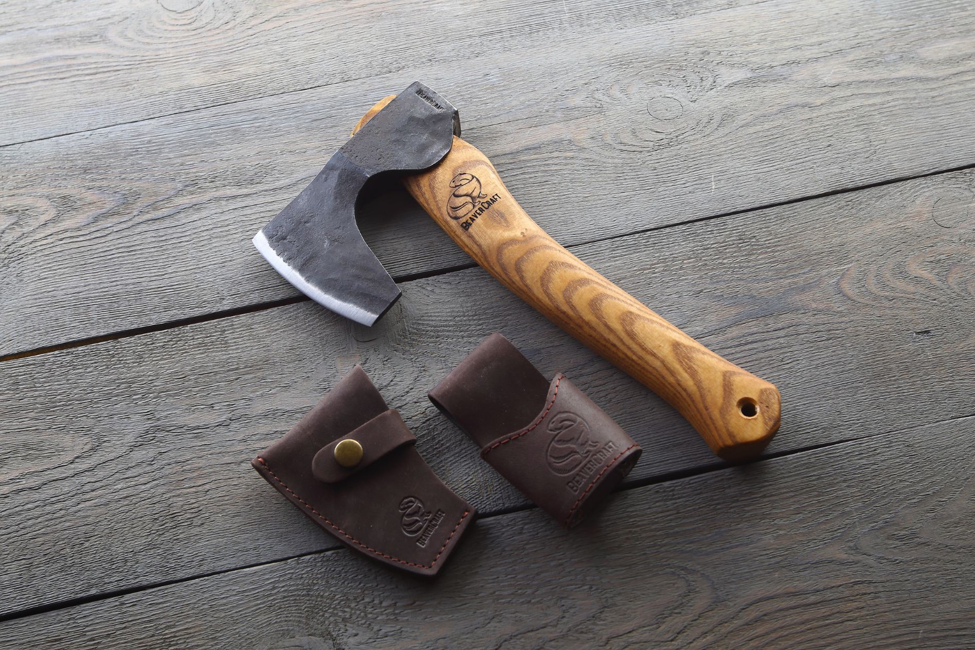 Сокира укомплектована шкіряним чохлом, який ефективно захищає лезо під час зберігання та транспортування, оберігаючи від подряпин і пошкоджень. Чохол додає інструменту естетичного вигляду та підвищує його зручність.