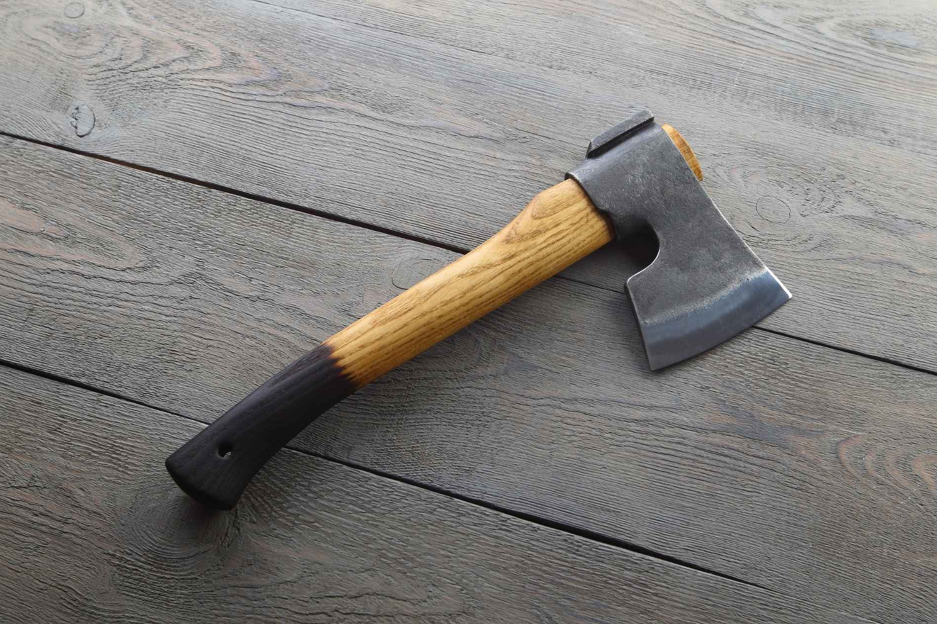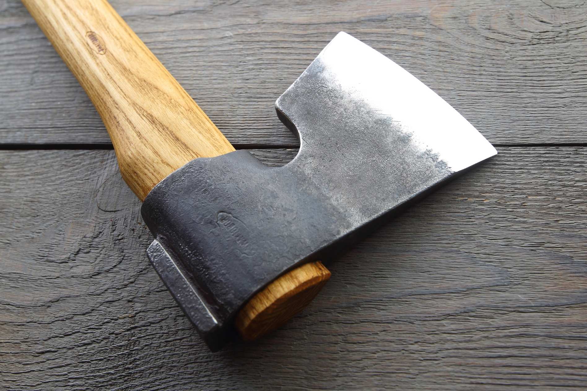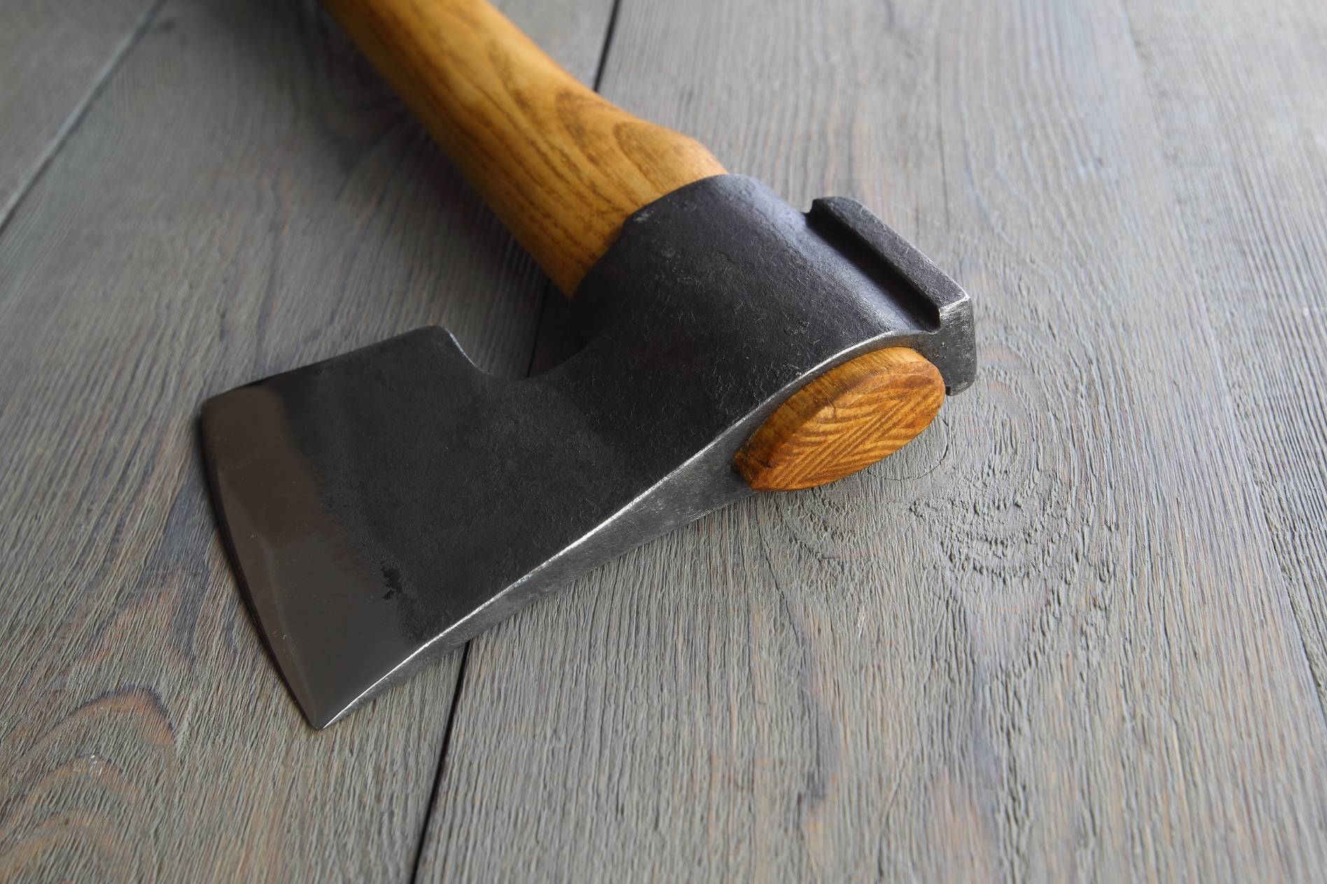 Ручка сокири виготовлена з високоякісного натурального ясена, що забезпечує не лише міцність і стійкість до зношування, але й естетичний вигляд інструмента. Ясен — це дерево з природними властивостями, які роблять його стійким до вологи і механічних пошкоджень. Цей матеріал відомий своєю довговічністю та комфортним хватом, що важливо для тривалого використання. Ручка має оптимальну форму, що дозволяє зручно тримати інструмент в руці, зменшуючи навантаження на передпліччя під час тривалої роботи.