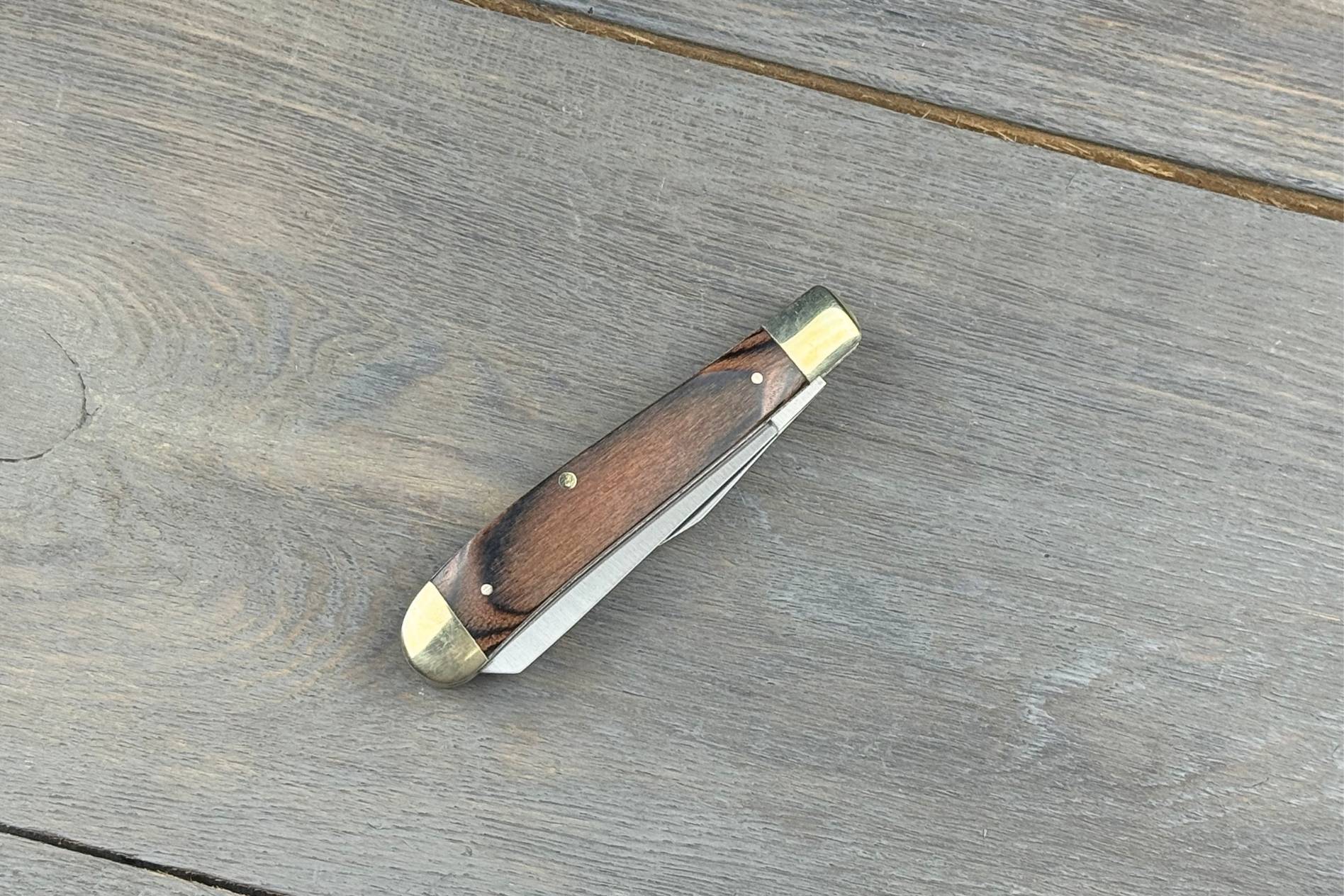 Руків’я виконане з дерева, що надає класичного вигляду та приємної тактильності. Дерев’яні накладки також забезпечують комфортний хват і природний стиль. Довжина руків’я 89 мм робить ніж компактним і зручним для щоденного носіння.