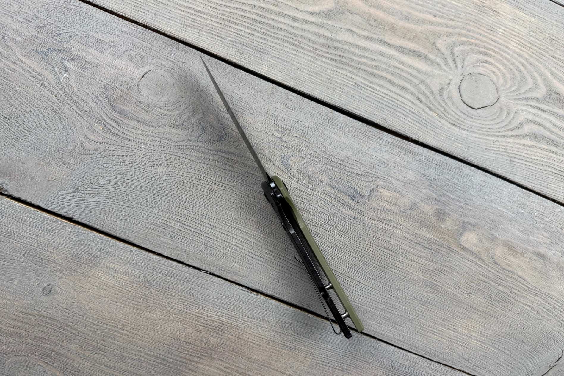 Руків’я виконане з G-10 — це надміцний композитний матеріал, який не боїться води, спеки, ударів і зносу. Завдяки довжині 120 мм, ніж добре лягає в руку, не ковзає навіть при вологих долонях або в рукавичках. Колір оливковий — стриманий і практичний, чудово поєднується зі спорядженням у стилі military або outdoor.