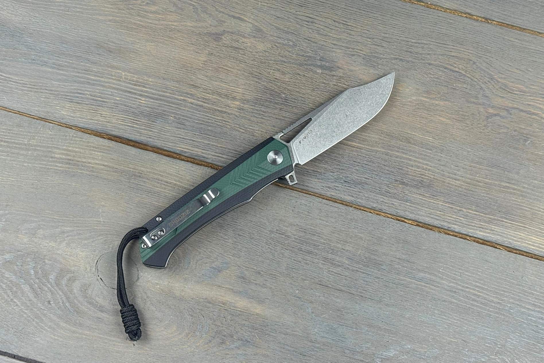 EDC компактний ніж зі сталі D2 з обробкою Stonewash поєднує довговічність, функціональність та стиль. Руків’я з зеленого та чорного G10 забезпечує комфортний хват, а керамічний кульковий підшипник — плавне відкривання. Вага 122 г гарантує відмінний баланс, роблячи ніж практичним та зручним супутником на кожен день.