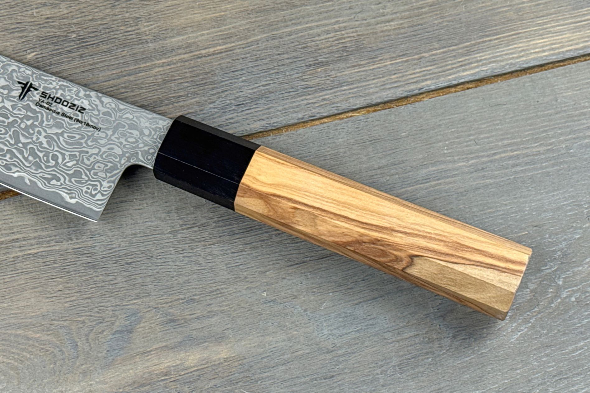 Кухонний ніж YA-02-A (santoku) від Shooziz — це універсальний інструмент у японському стилі, створений для щоденної роботи на кухні. Він поєднує збалансовану геометрію, преміальні матеріали та естетику, орієнтовану як на професійних кухарів, так і на вимогливих домашніх користувачів.