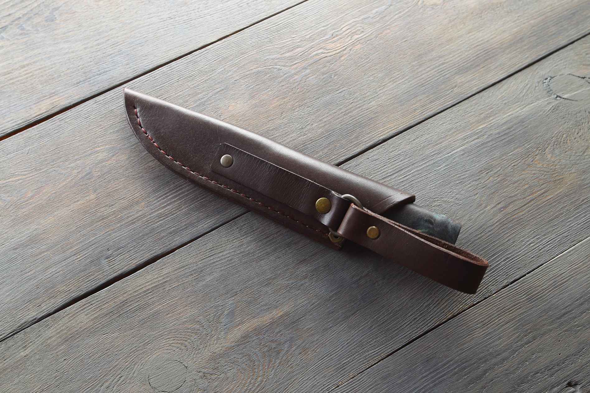Ніж комплектується шкіряними ножнами, які надійно захищають лезо від пошкоджень. Тип кріплення – вільний підвіс, що дозволяє зручно носити ніж на поясі або спорядженні, забезпечуючи легкий доступ до інструмента в будь-який час.